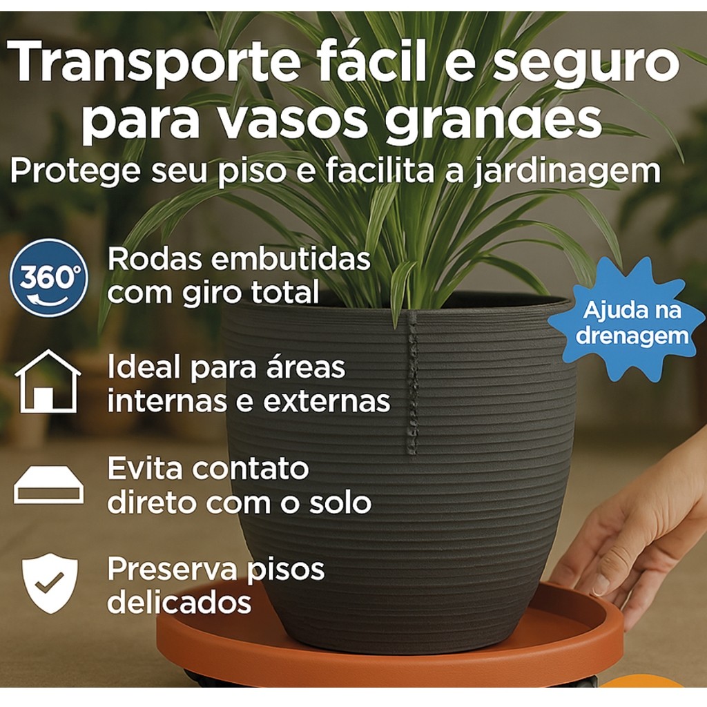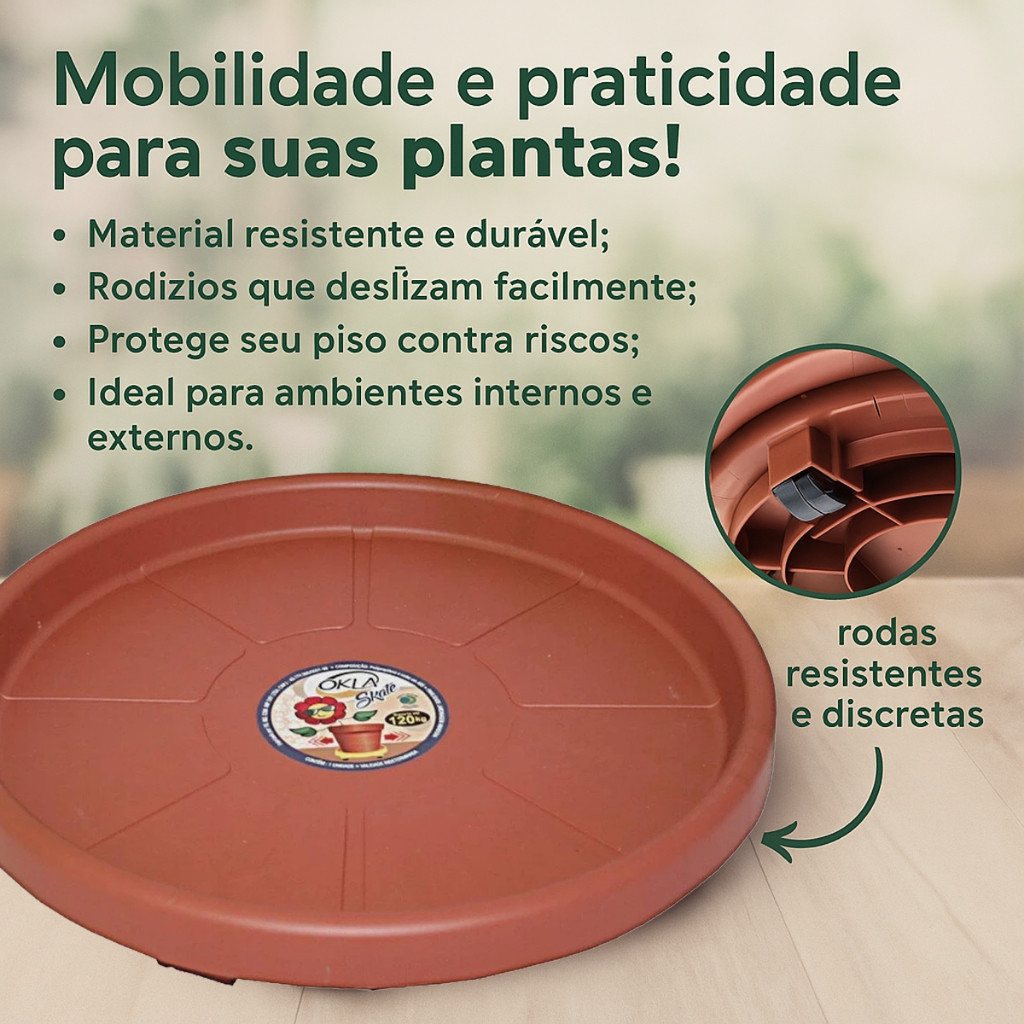 Prato para vaso com rodas redondo todas as cores resistente suporte em ABS