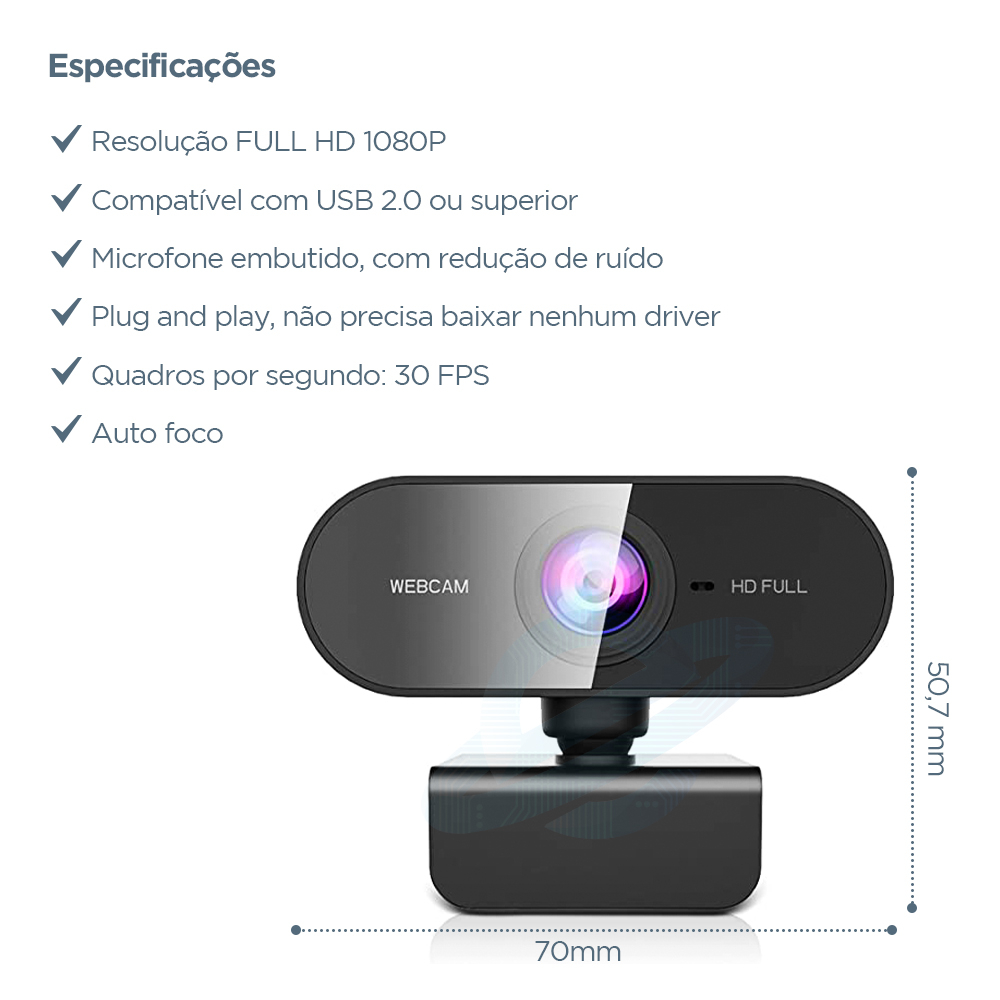Câmera Full HD Webcam 1080p Alta Resolução Microfone Embutido Antirruido PC Computador 360º