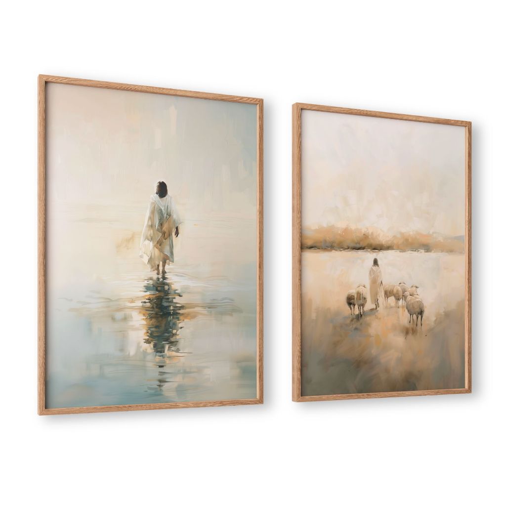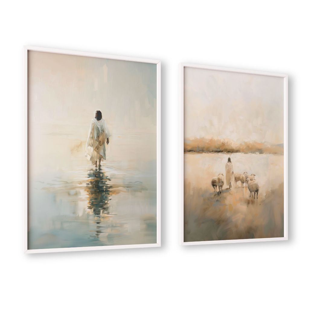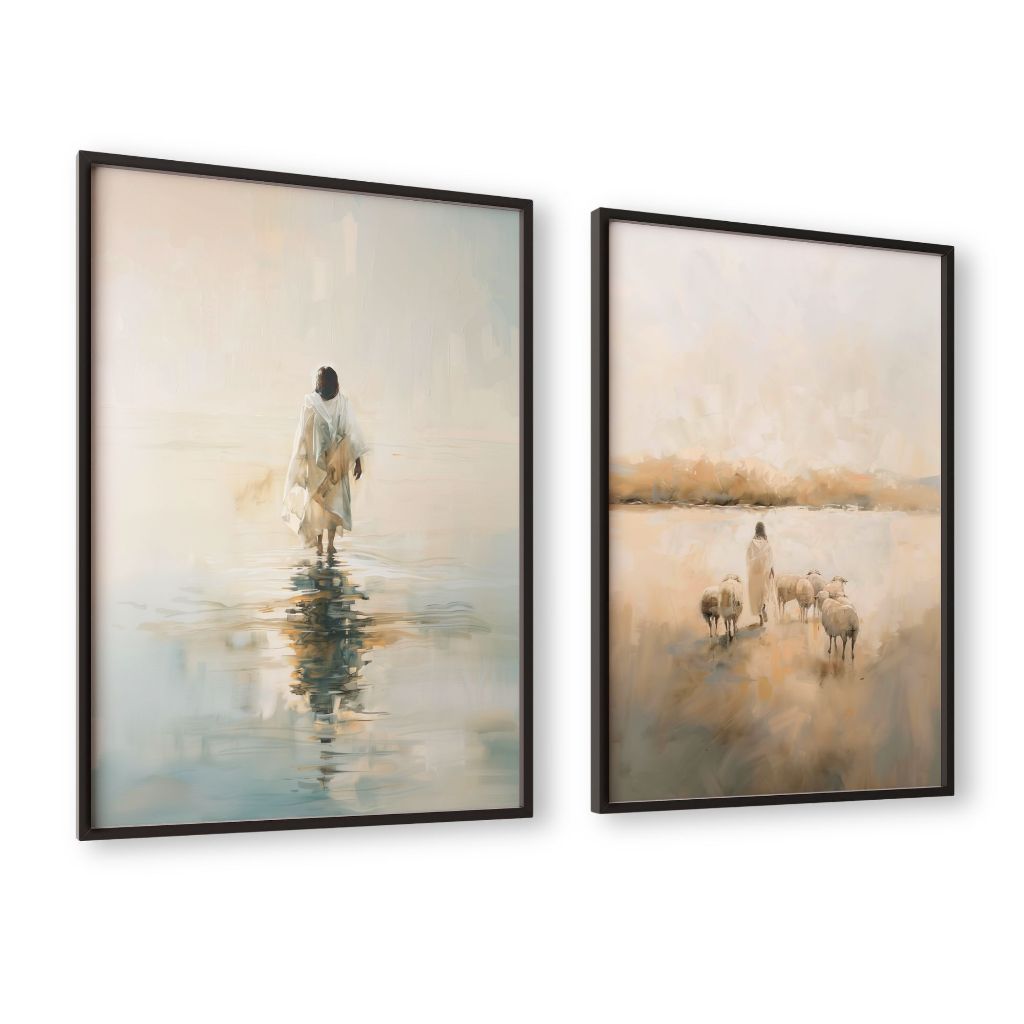 Kit 2 Quadros Jesus Sobre as Aguas e Jesus Apascenta as Ovelhas