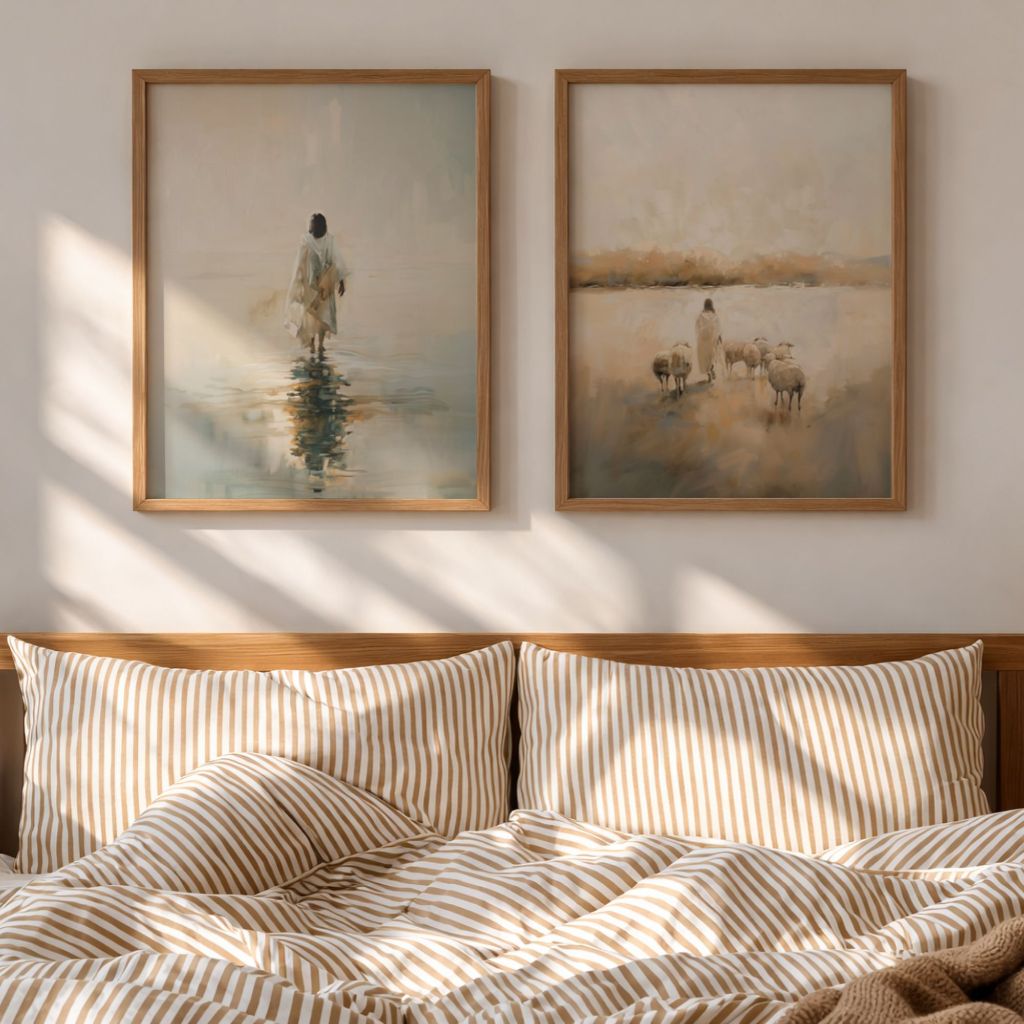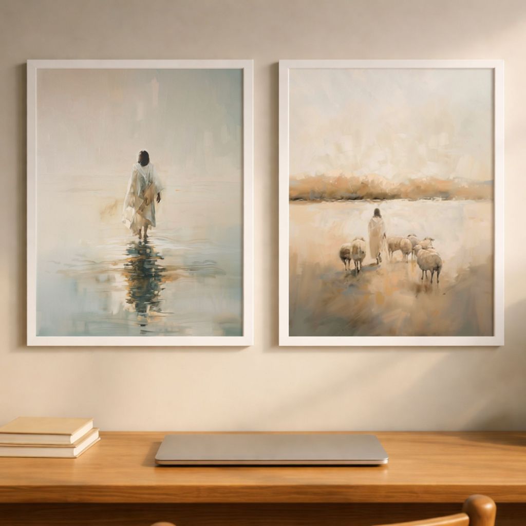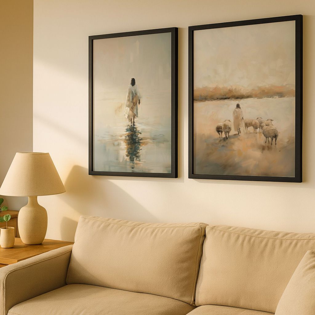 Kit 2 Quadros Jesus Sobre as Aguas e Jesus Apascenta as Ovelhas