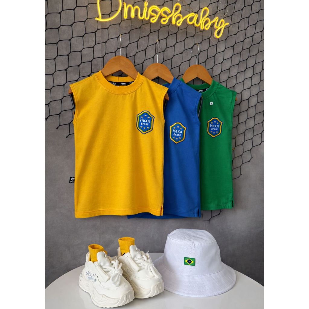 camiseta regata ESTAMPA DO BRASIL ,COPA DO MUNDO infantil estiloso verão moda menino 02 a 12 anos| REGATA brasil brasão
