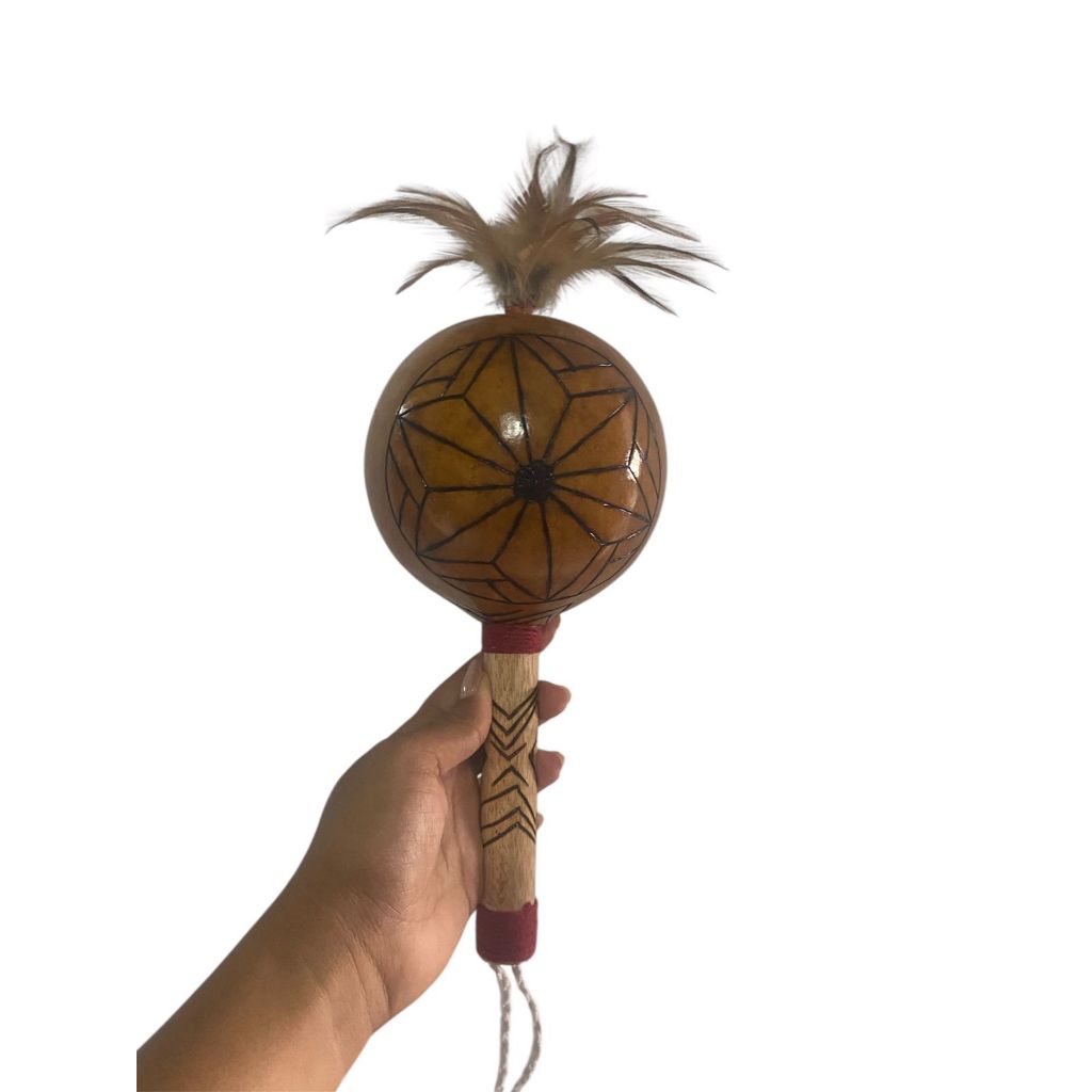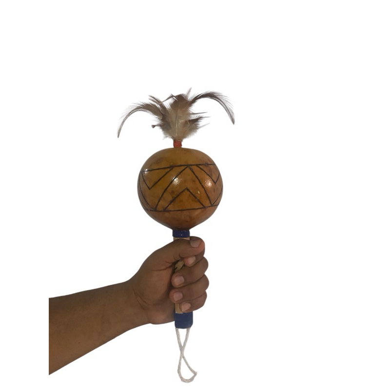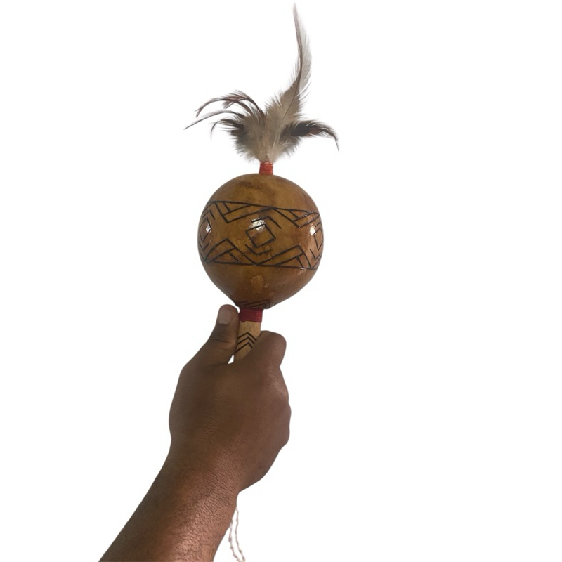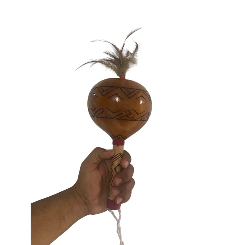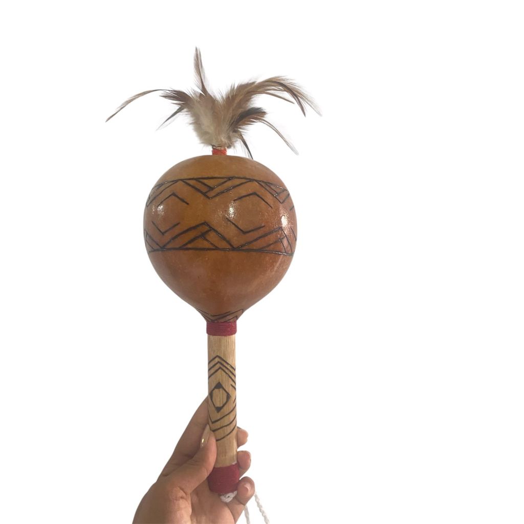 1 Maraca Cabaça Penas Artesanal Indígena Exclusiva