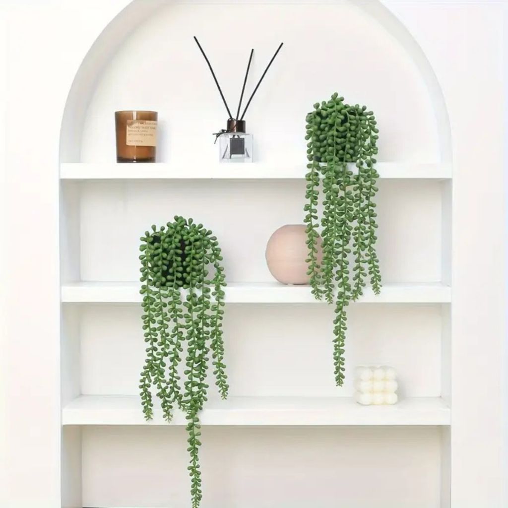 2 Plantas 2 Vinhas Suculentas Artificiais Verdes e Realistas -Folhagem pendentes para Jardim Externo decoração
