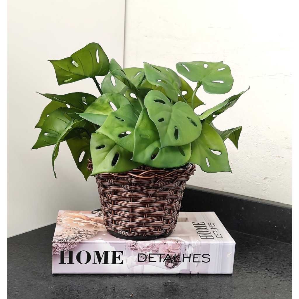 Arranjo Decorativo Para Sala Prateleiras Escritório Plantas Folhagem Realista 3D no Vaso Marrom Completo