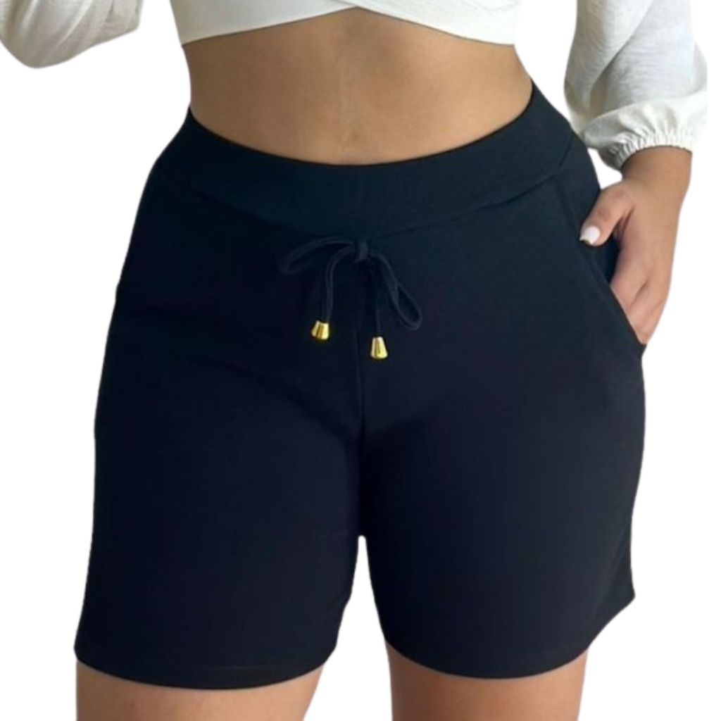 Shorts feminino crepe bermuda com bolsos premium