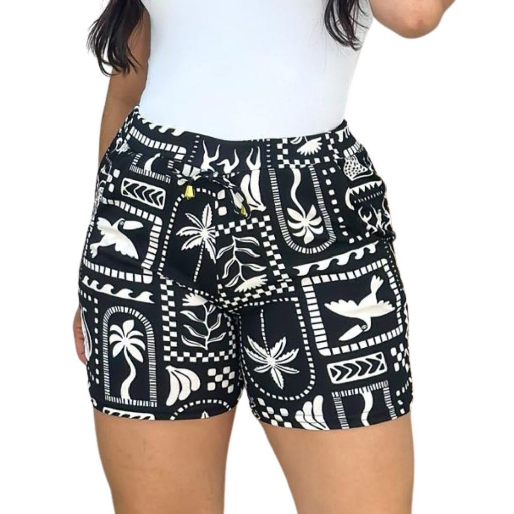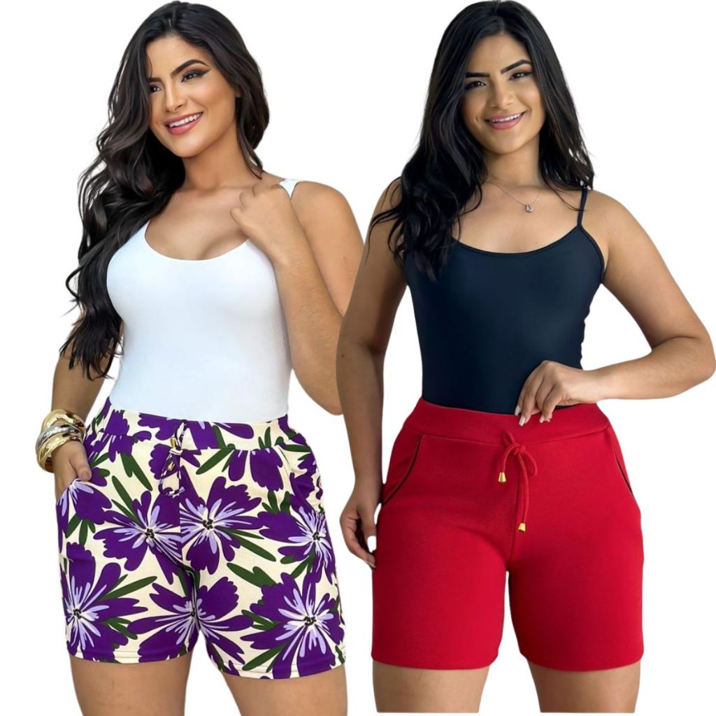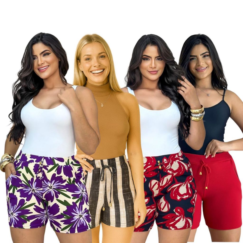 Shorts malha crepe feminino liso listrado floral cores variadas kit combo