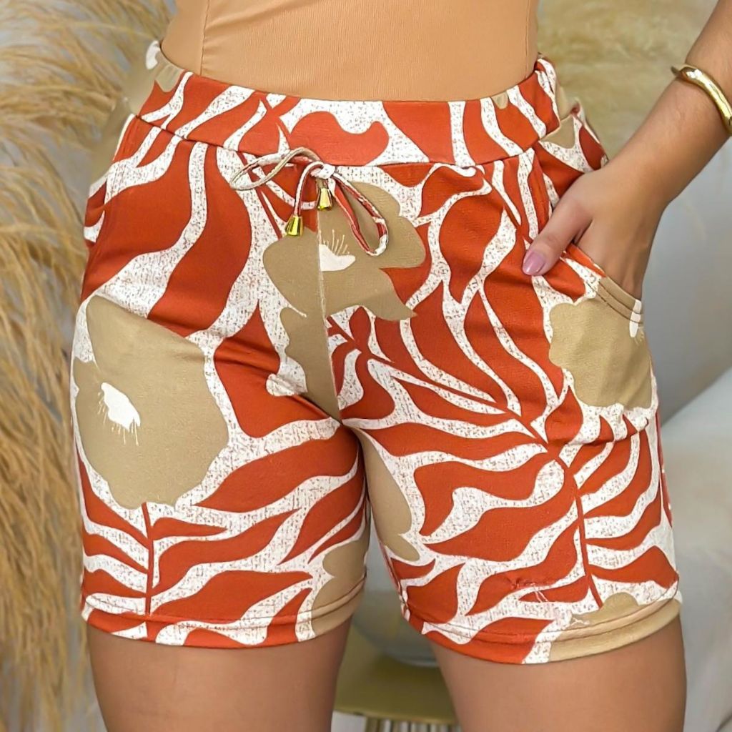 Quite shorts crepes feminino cintura alta bermuda com bolso