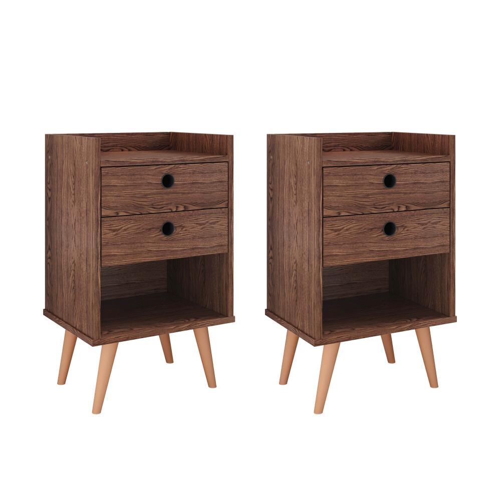 Kit 2 Mesas De Cabeceira Com Gavetas Quarto Casal Solteiro Bento Pés Palito