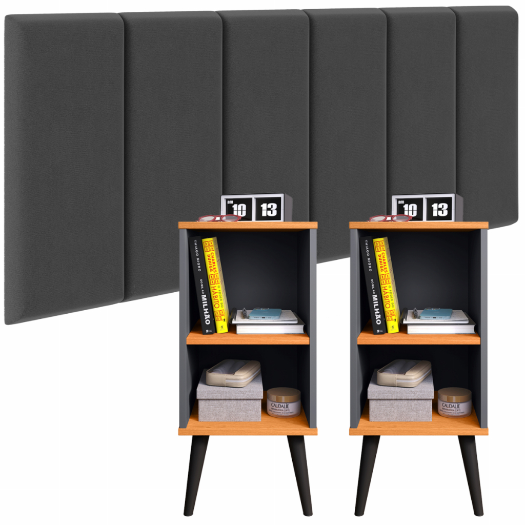 Conjunto Quarto Bidê 2 Mesa de Cabeceira e 1 Cabeceira Casal 1,40 Varias Cores