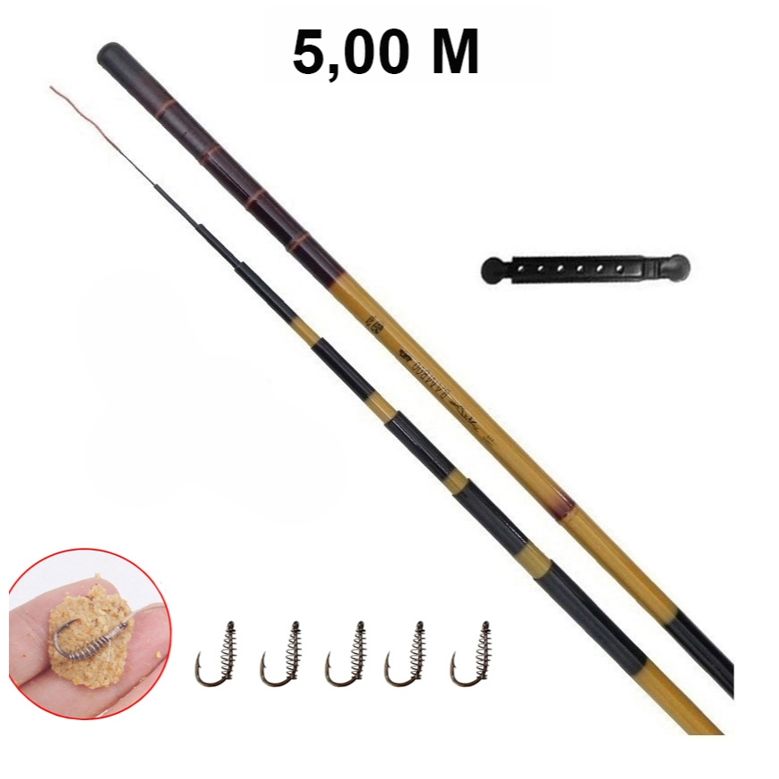 Vara Telescópica Bamboo Albatroz 41% Carbono + Enrolador de Linha + 5 Anzóis com Mola