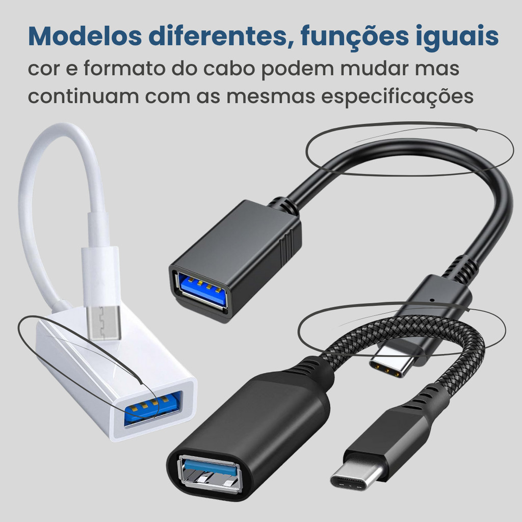 Cabo Adaptador OTG USB Para Tipo C Mouse Teclado Pendrive 3.0 - Escolha Seu Kit