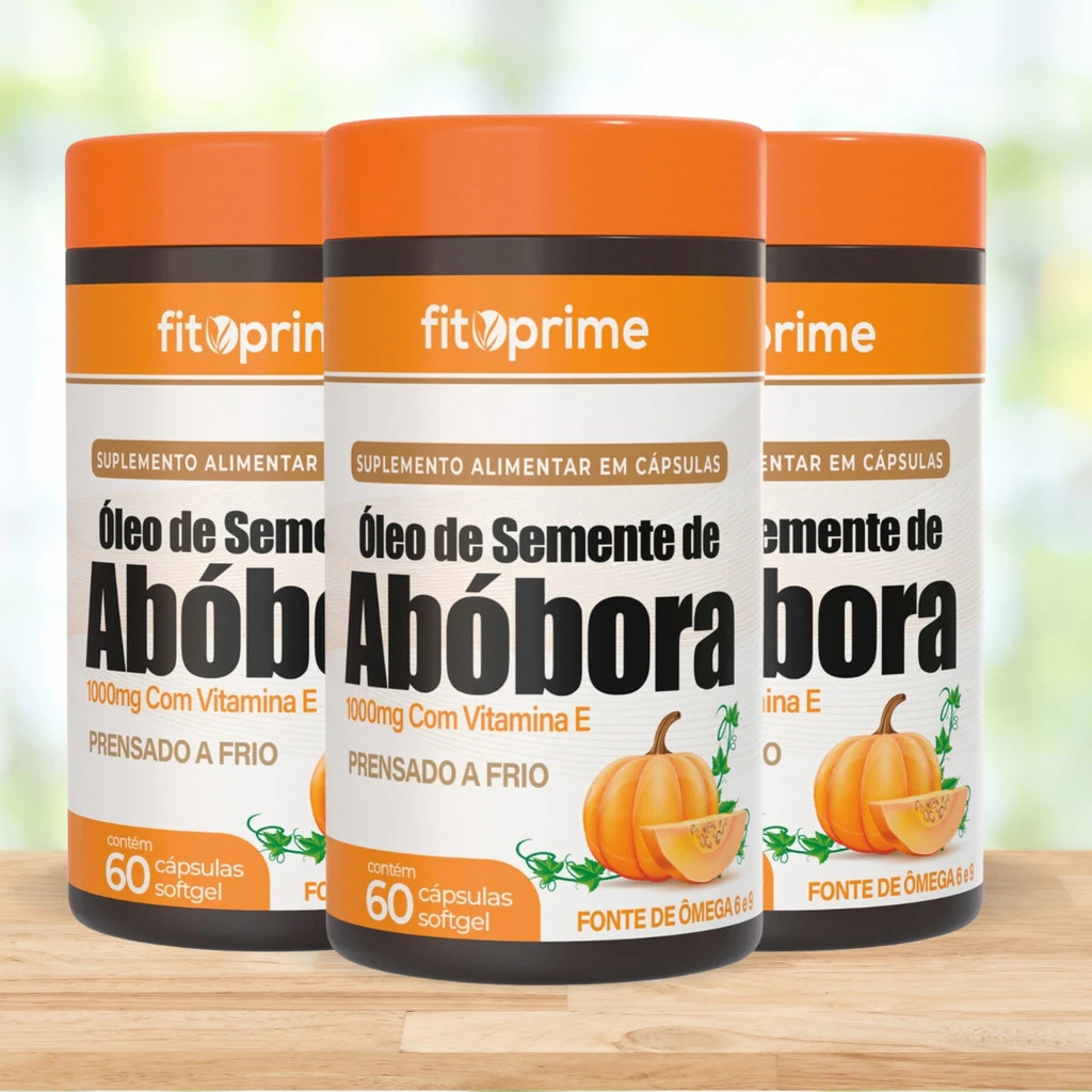 Kit 2x Potes Óleo de Semente de Abóbora 1000mg com Vitamina E 60 cápsulas - Fitoprime