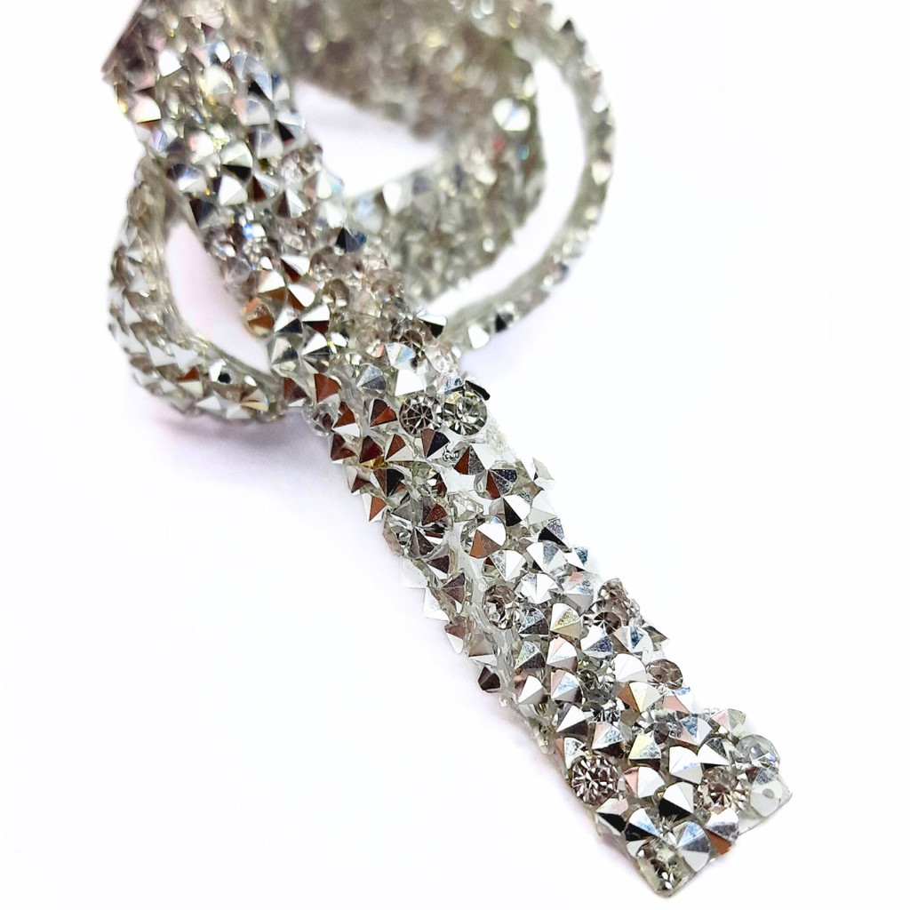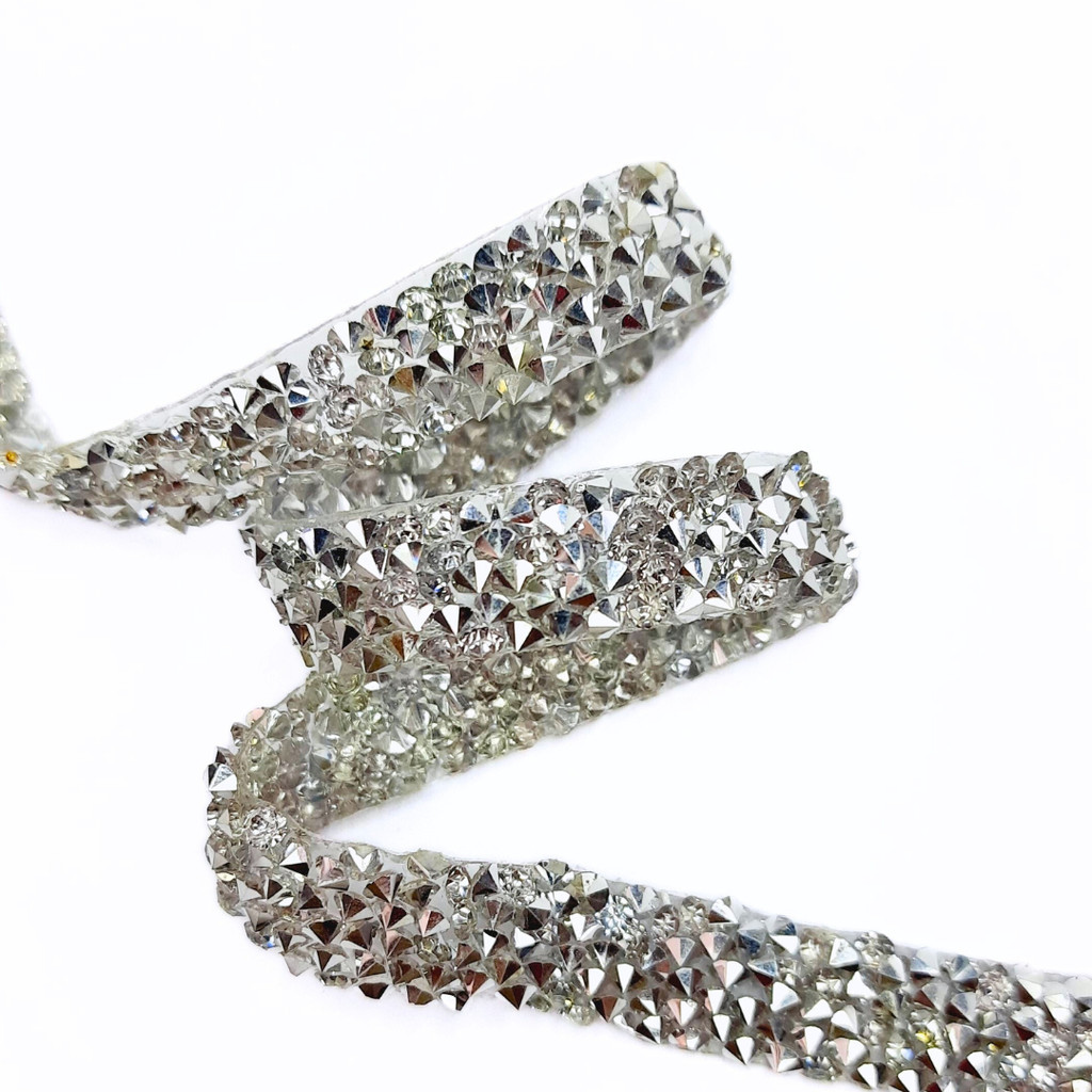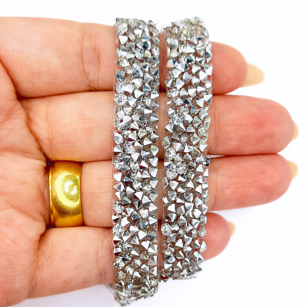 Fita de Strass Termocolante 10mm Prata em Resina