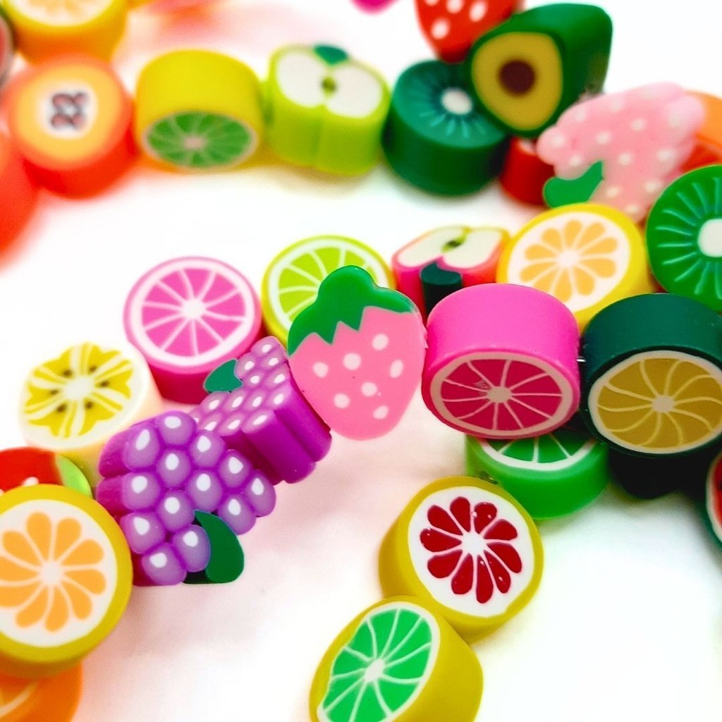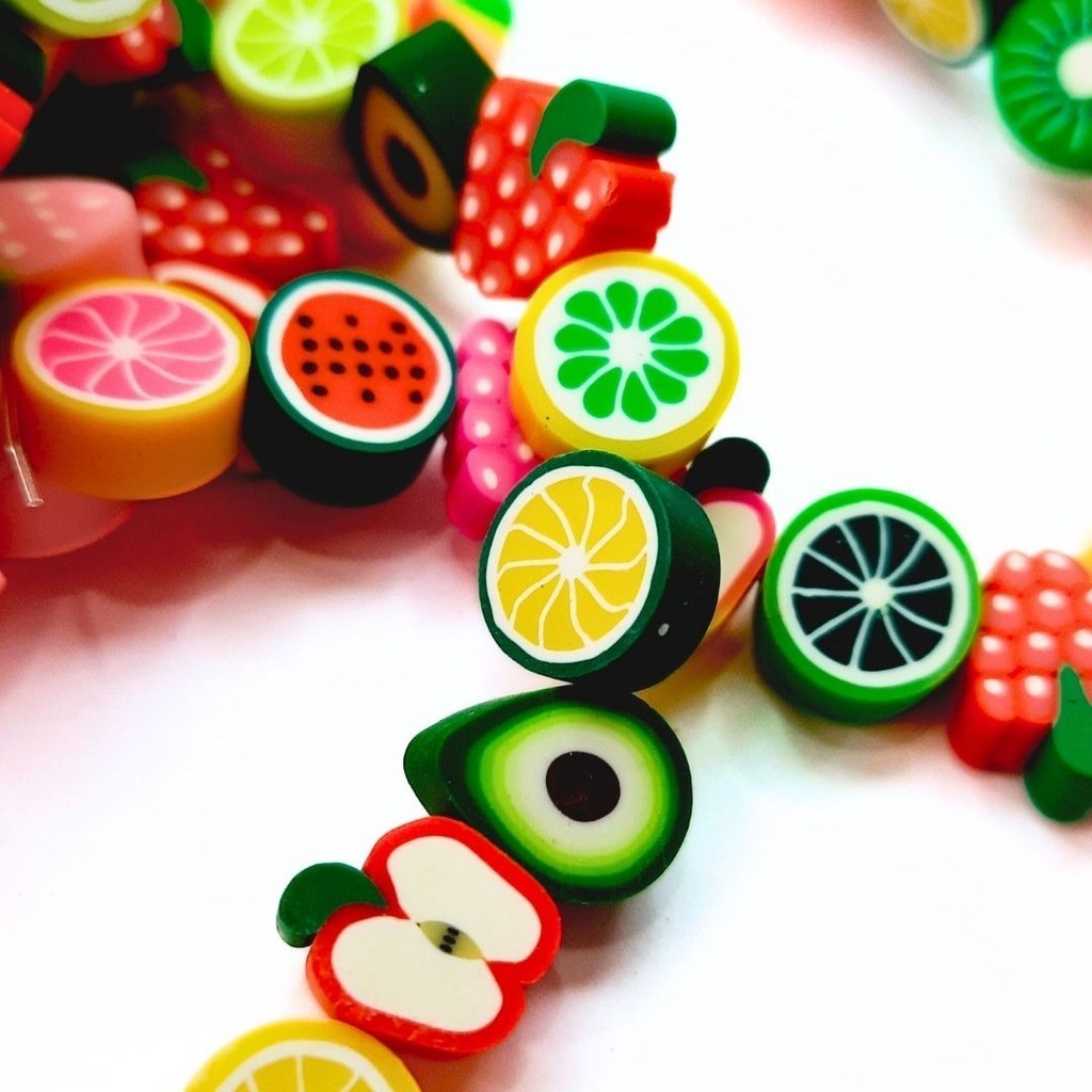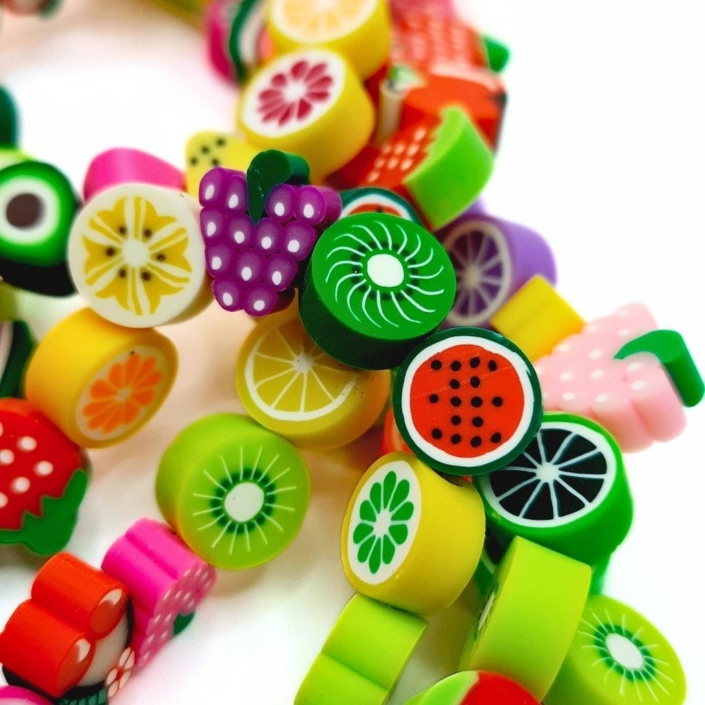 Miçanga Emborrachada Fimo Little Fruits 11mm Colorido Diy Frutinhas