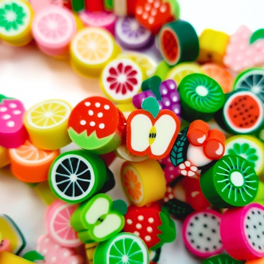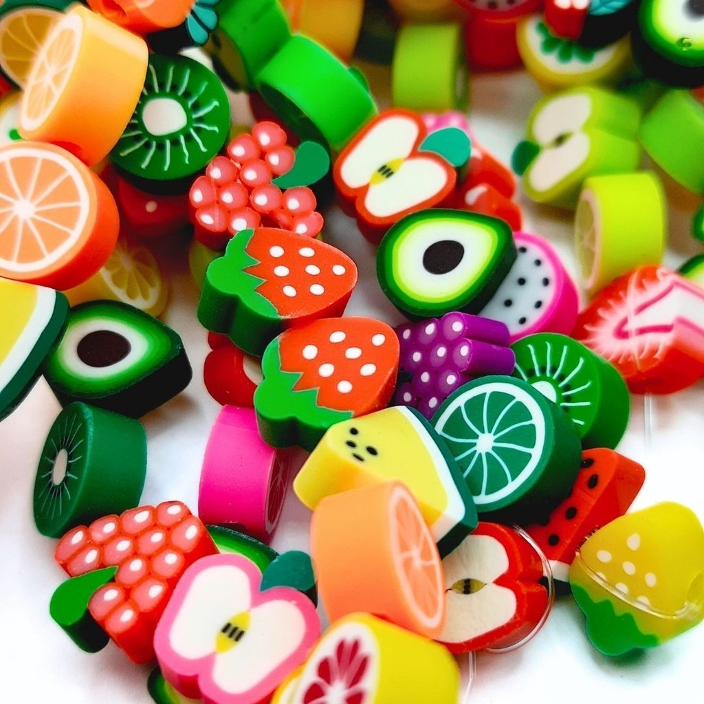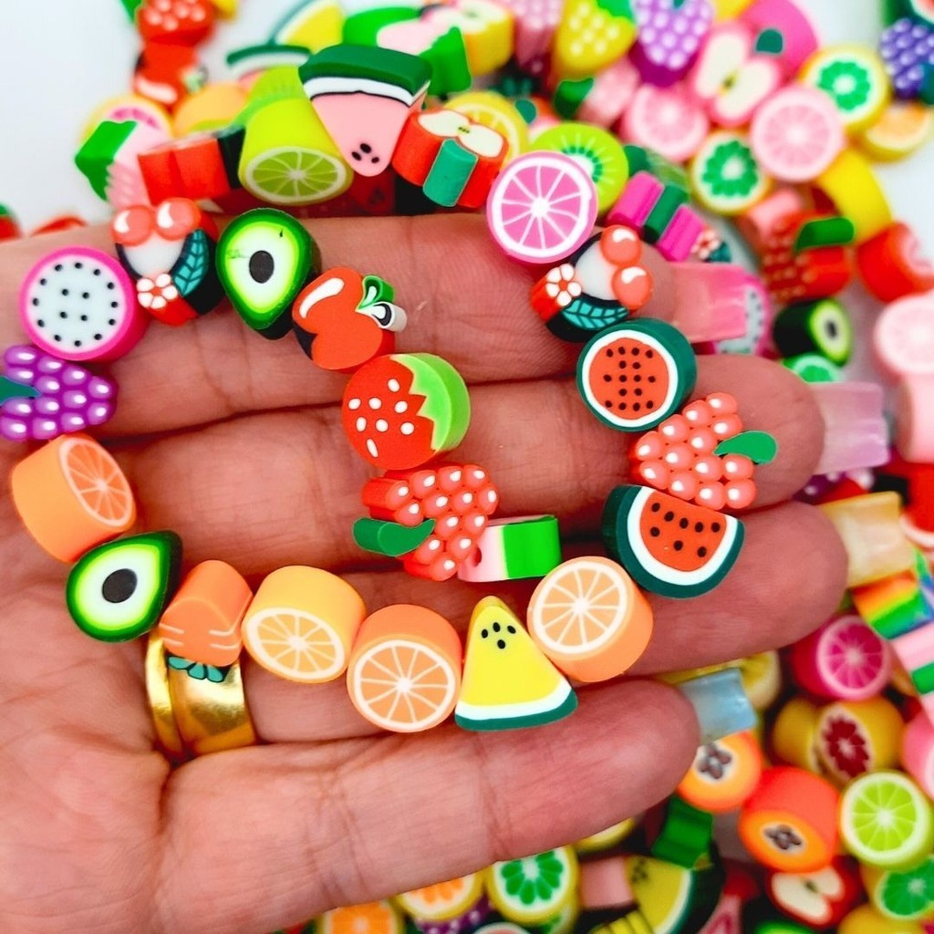 Miçanga Emborrachada Fimo Little Fruits 11mm Colorido Diy Frutinhas