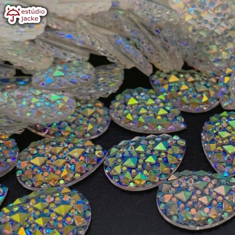 Chaton Gota Cascalho 13x18mm Resina - Preto - Base Reta