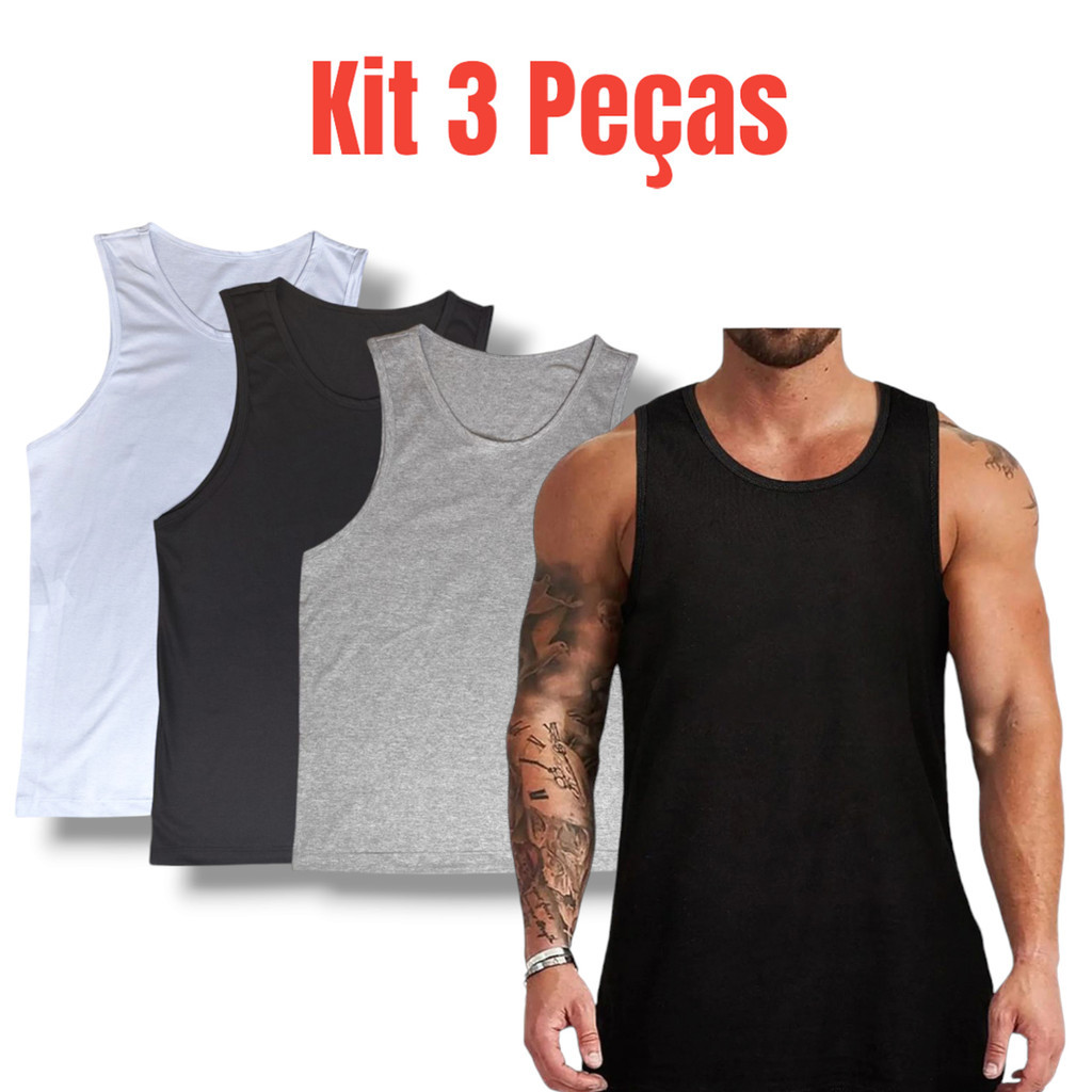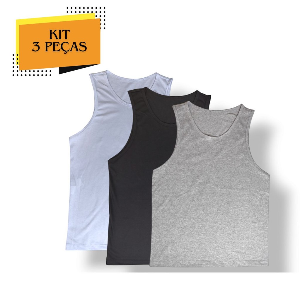 Kit 3 Regata Masculina Básica 100% algodão comfort
