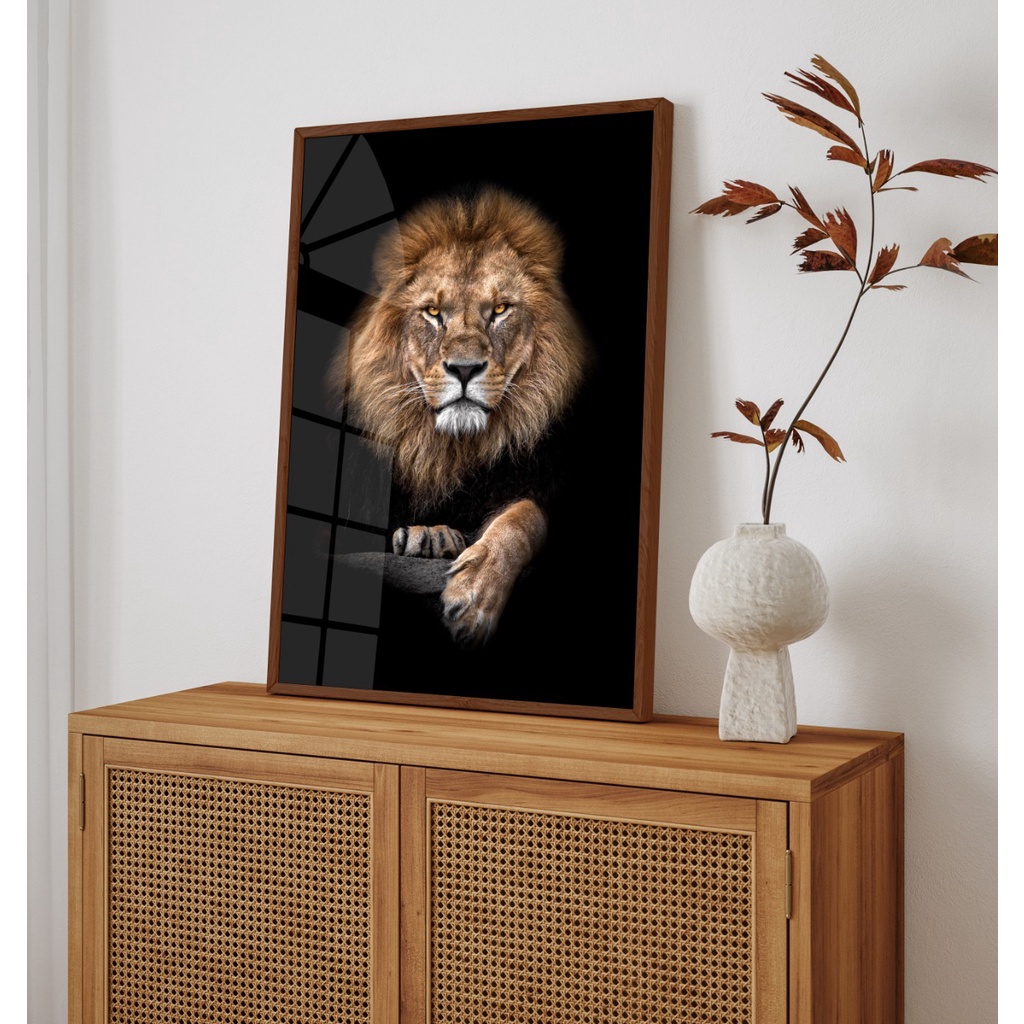 Quadro Leão Moldura e Vidro Sala Quarto Sala Corredor