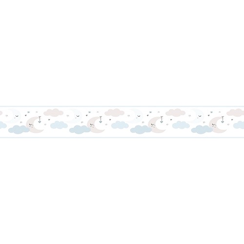 Faixa Decorativa Quarto Menino Nuvens , Lua e Estrelas 15cm x 1,20