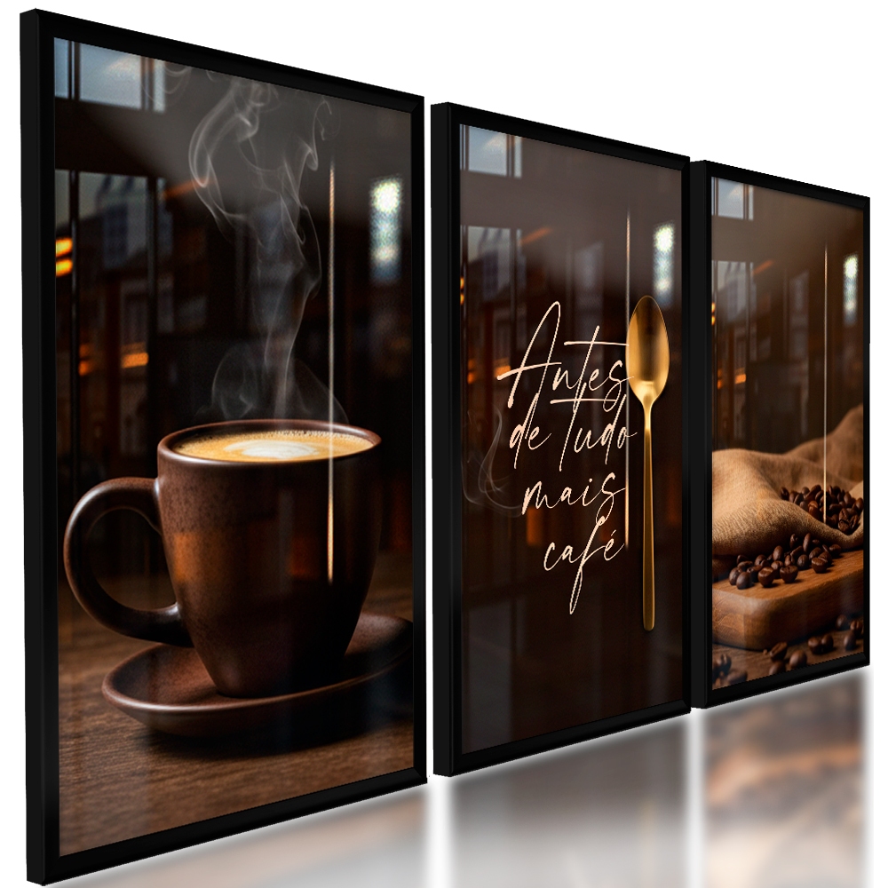 Quadro Decorativos Trio Moderno Cantinho Café Cafeteria Grãos Luxo Espaço