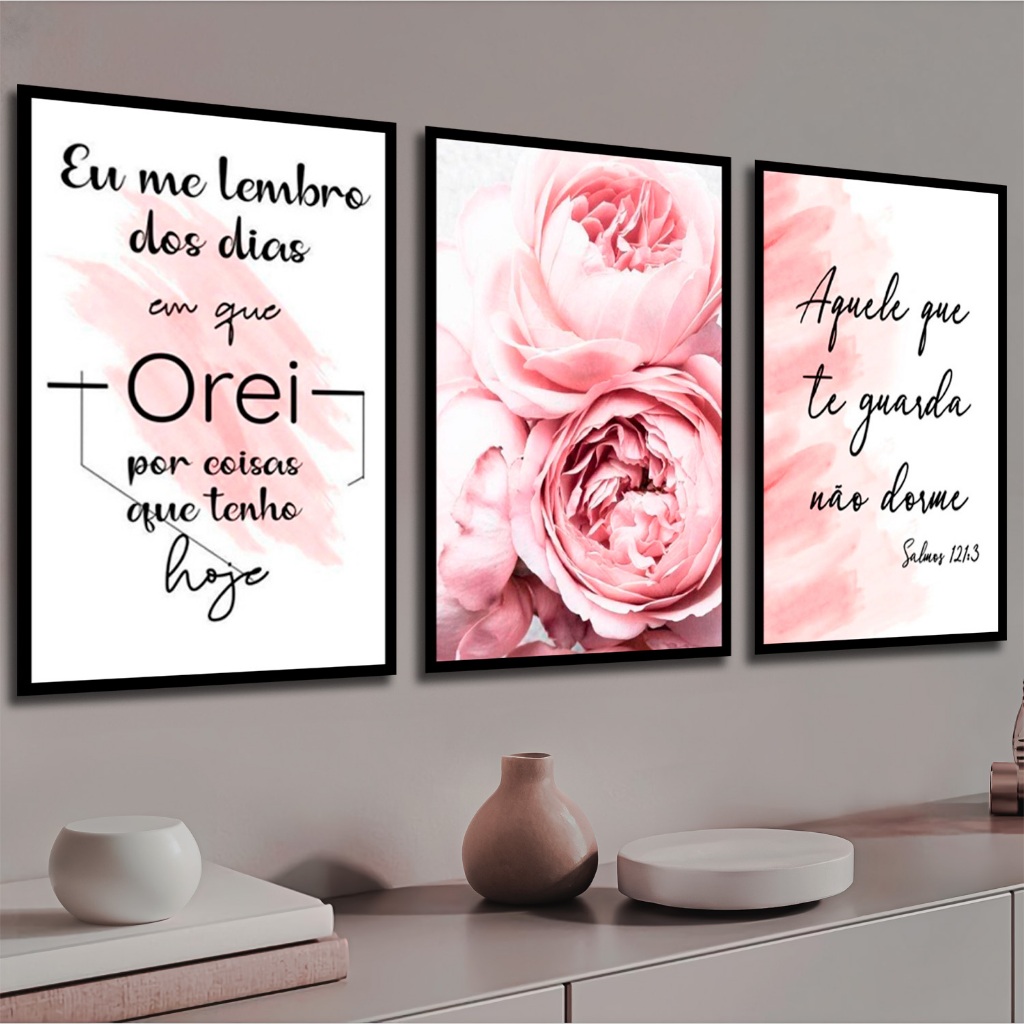 Quadros Decorativos Flores Rosa Eu Me Lembro Dos Dias Sala Quarto 3 Peças