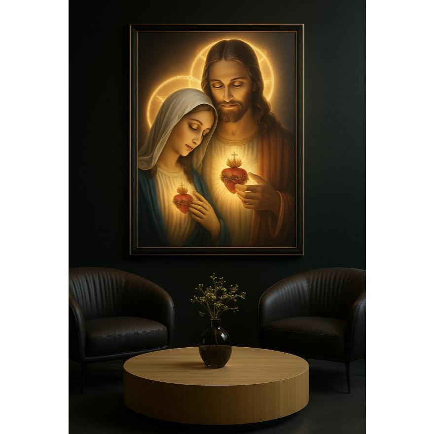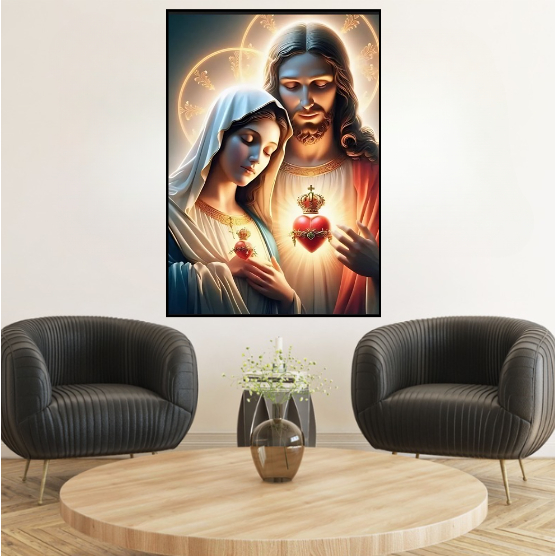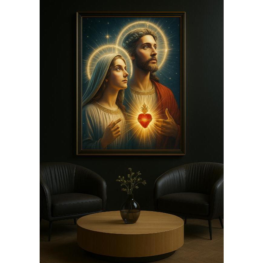 Quadro Decorativo Sagrado Coração de Jesus Maria Arte Religiosa Casa Sala Vinil Alta Qualidade