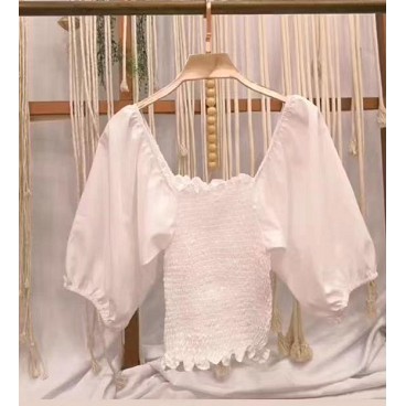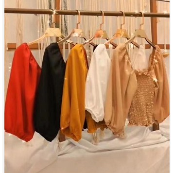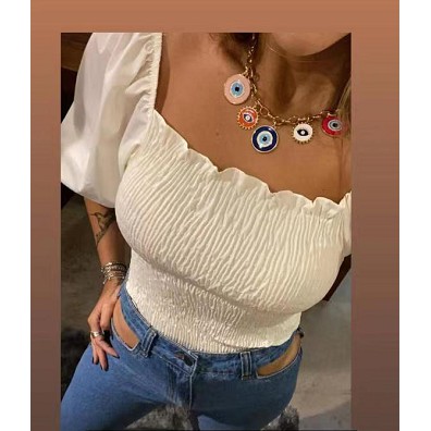 Cropped Blusinha De Lastex Manga Bufante Ombro A Ombro Tendência Femenina - RD88030