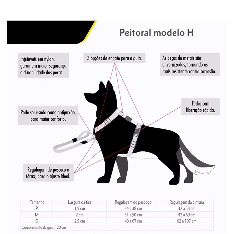 Kit Coleira Novo para Cachorro Peitoral modelo H + Guia padrão