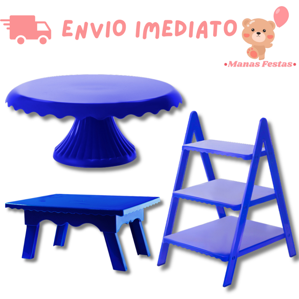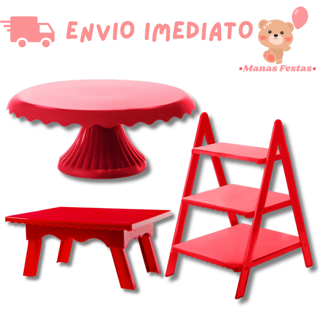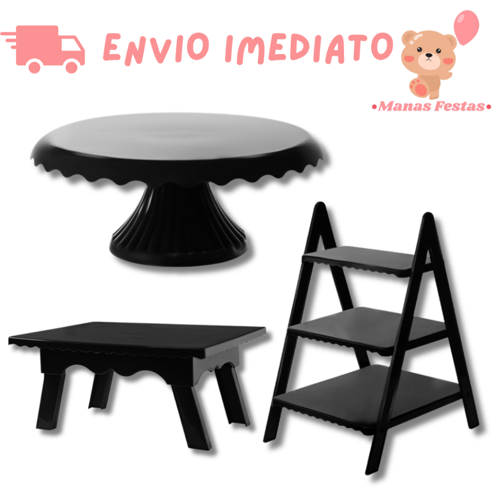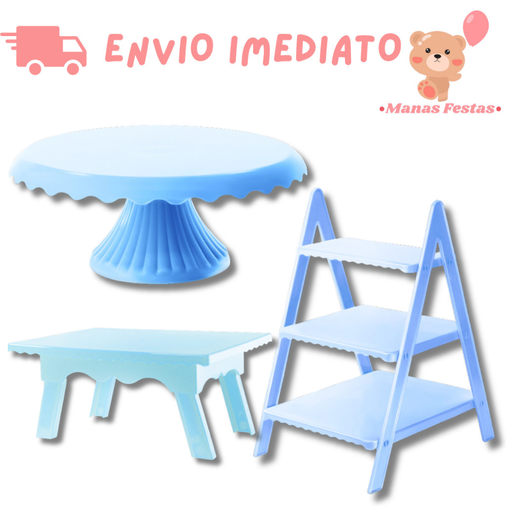 Kit Luxo Simplificado com Boleira Cake Renda 22cm + 1 Mesinha + 1 Escadinha Decorativa (3 Peças)(+5 Cores)