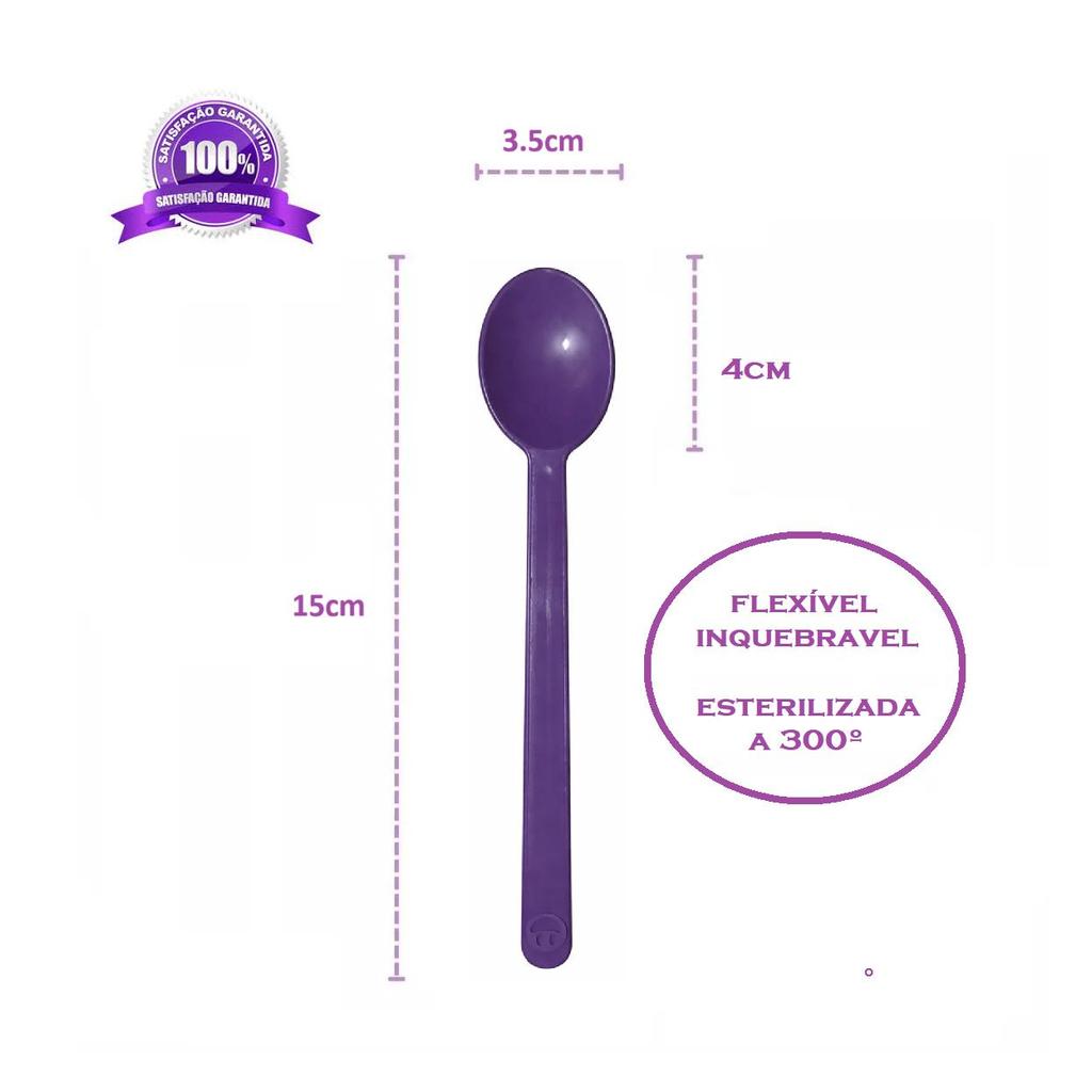 1000 Colher 15cm Com Emoji Açaí Sorvete Sobremesa Reforçada Roxa