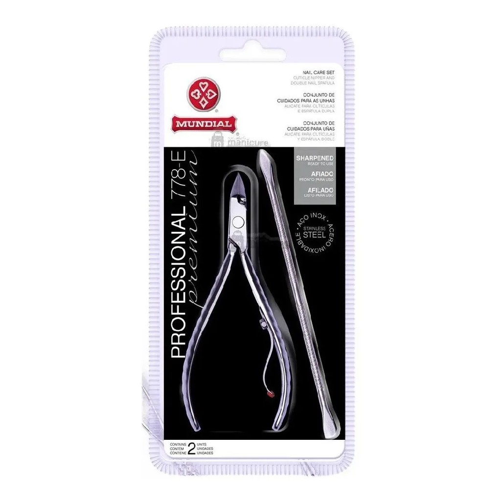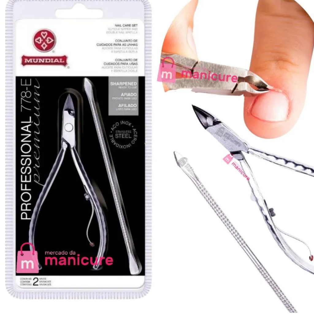 Alicate de Cutícula Mundial 778-e Profissional + Espatula Empurrador De Cuticula