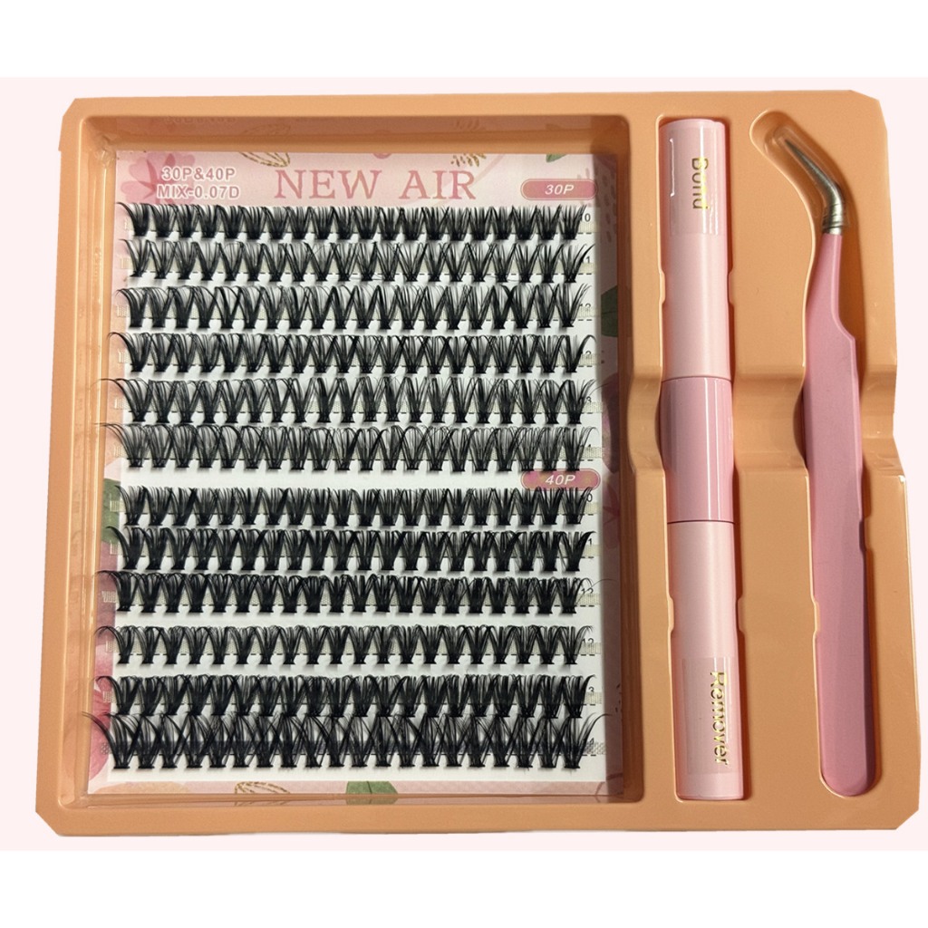 Cílios Tufos Sem Nó 30P+40P Mix 10 ao 14mm + Pinça + Cola e Removedor