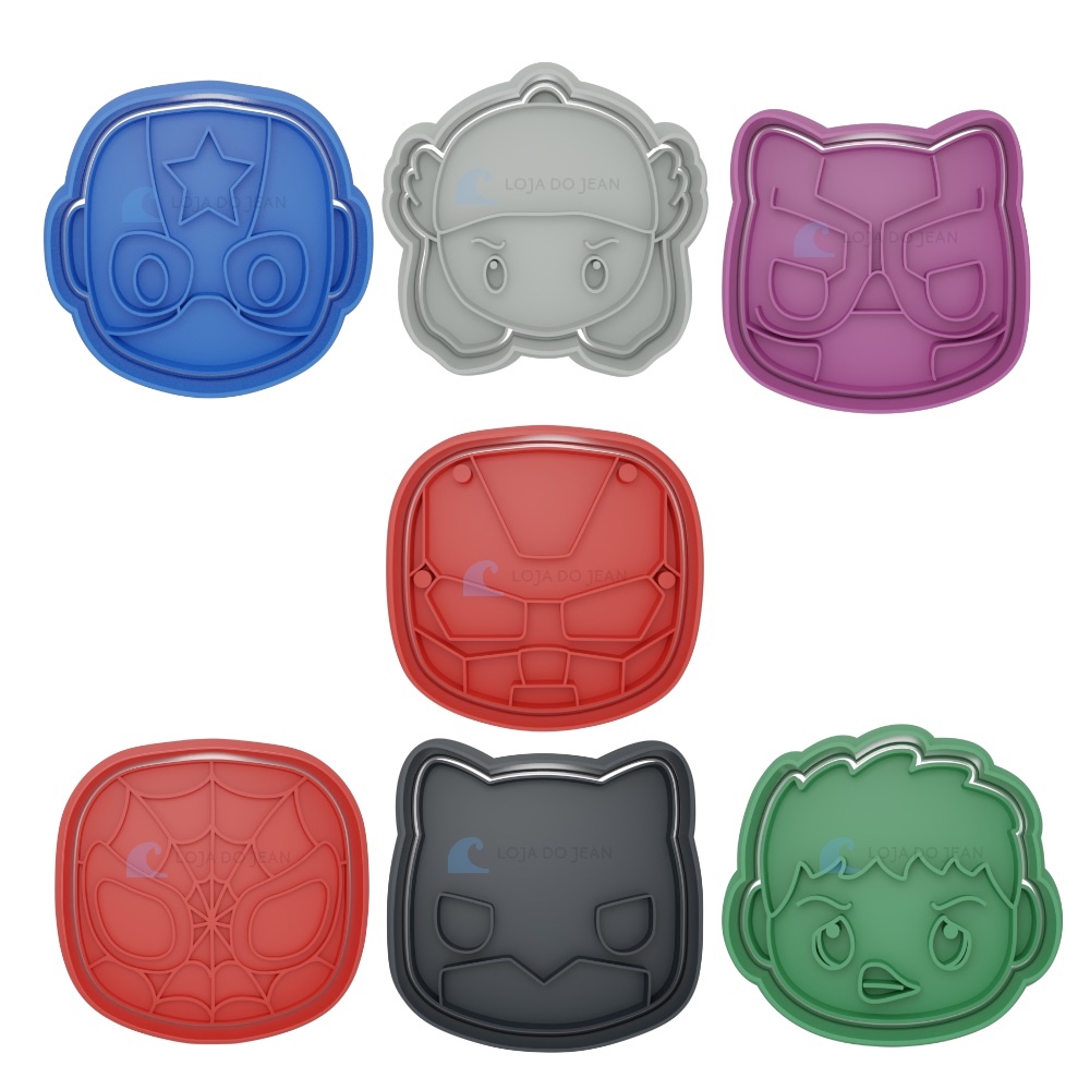 Kit 8 Cortador Marcador Cookie Super Heróis Avengers Spiderman Thor Batman Hulk Iron Man