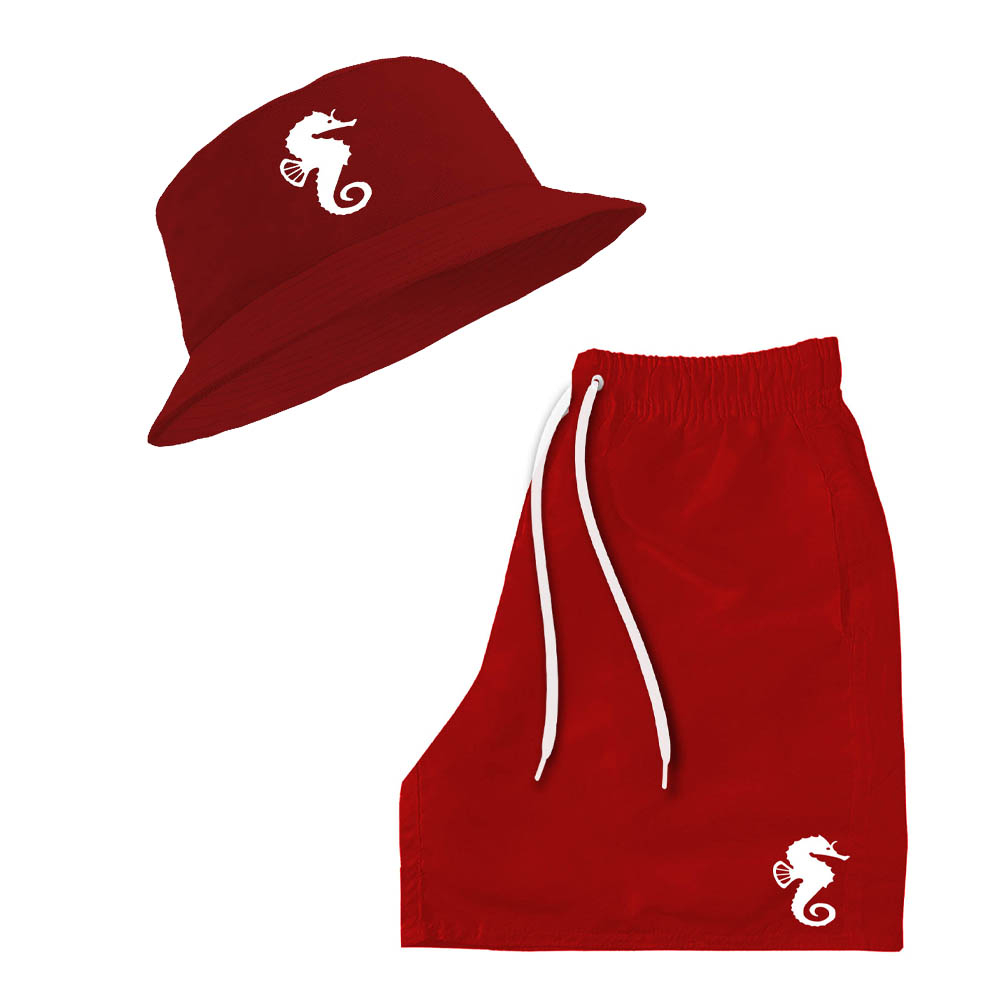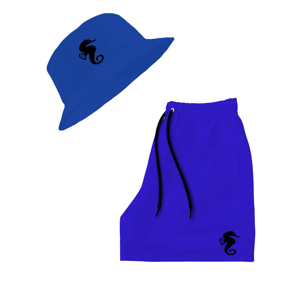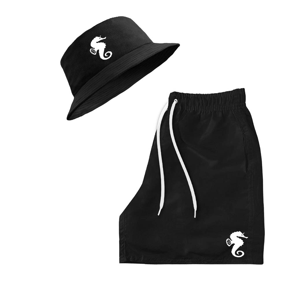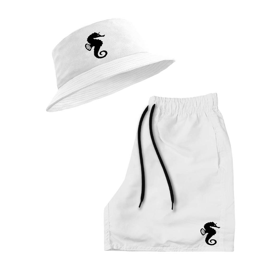 Short Praia + Chapeu Bucket Hat Masculino Estampa Cavalo Marinho Mar