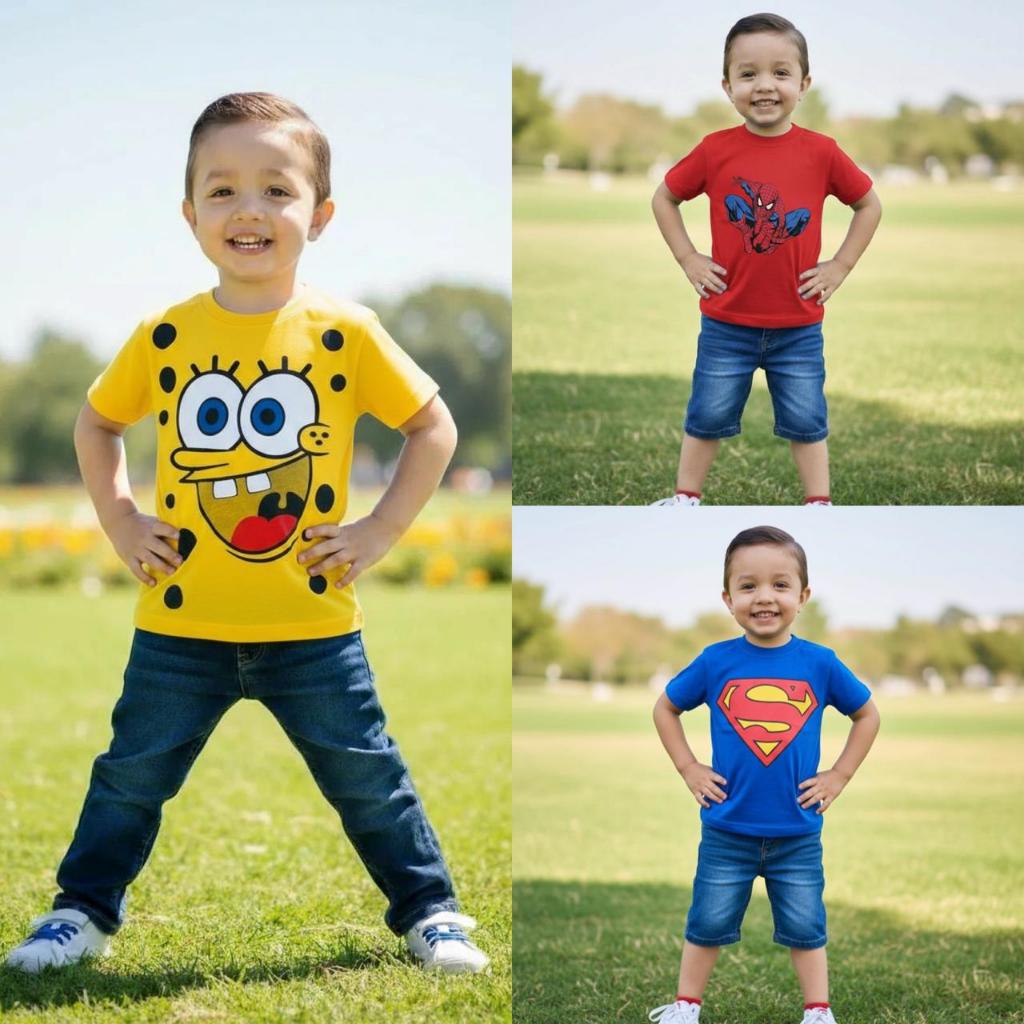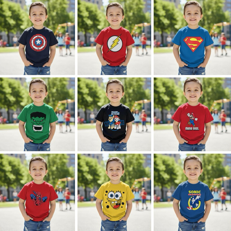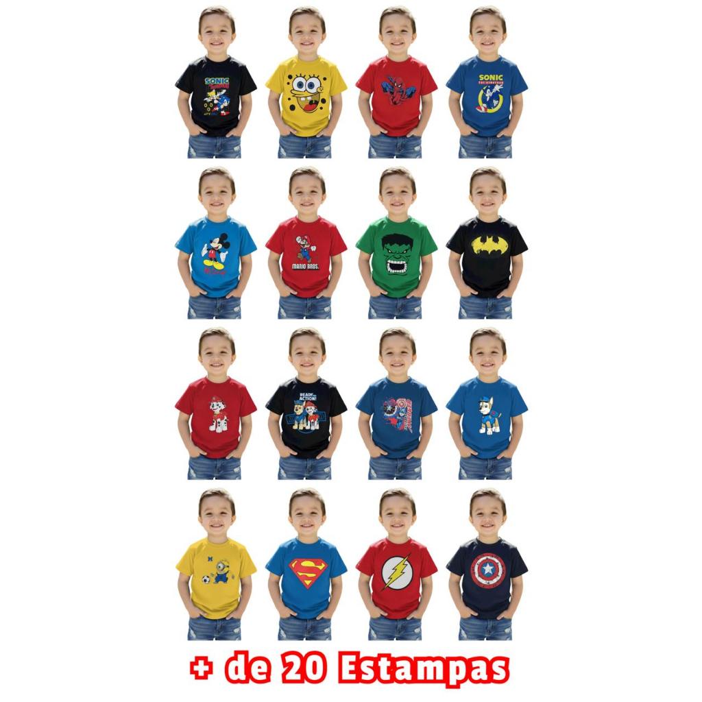 Camiseta Masculina Infantil Personagem Super Heróis Manga Curta 100% Algodão