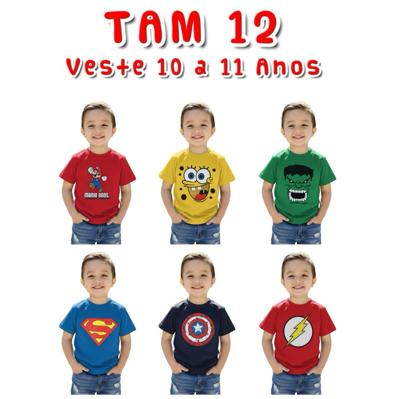 Kit 3 Camisetas Masculina Infantil Manga Curta Super Heróis Personagem 100% Algodão 30.1