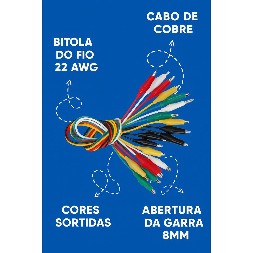 Garra Jacaré com Cabo – Kit com 10 fios coloridos