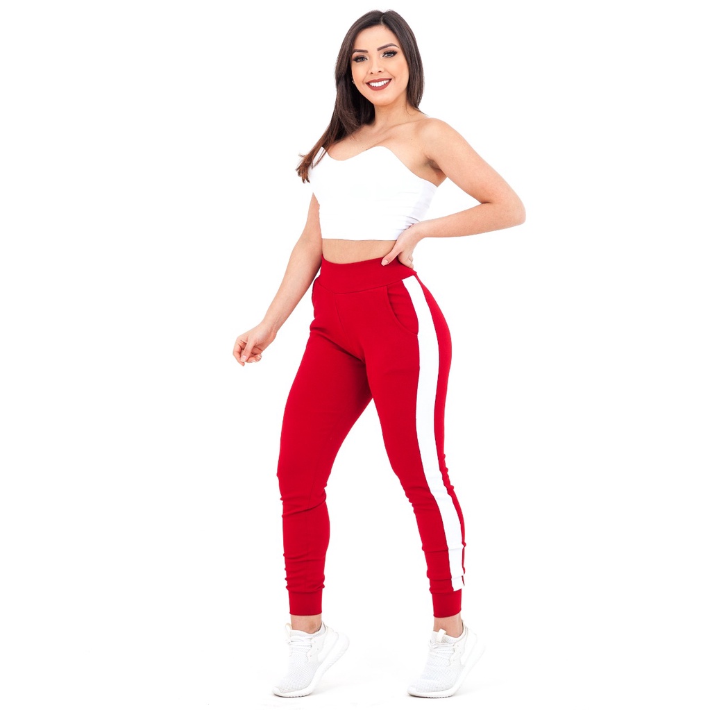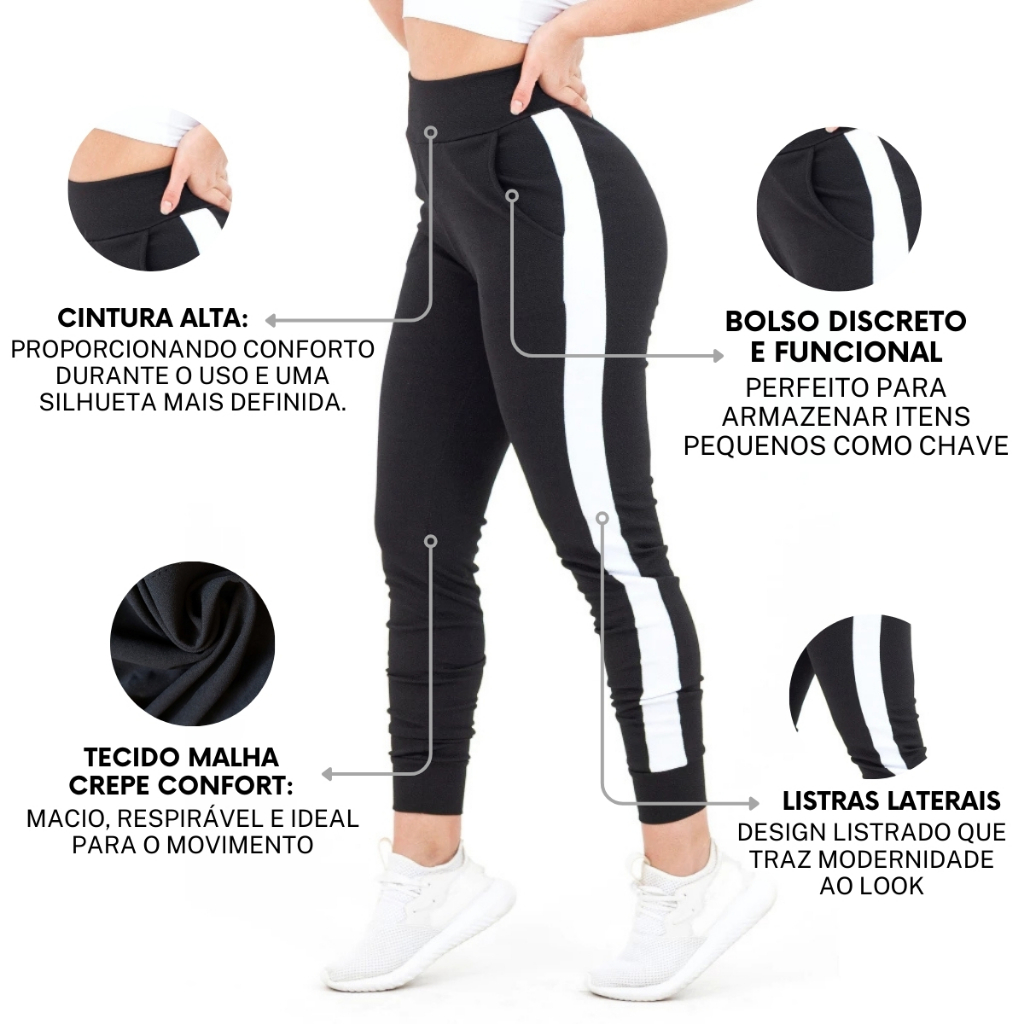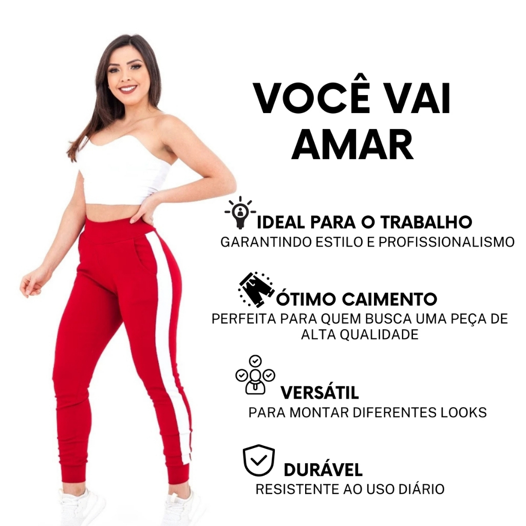 Calça Moletom Feminina Jogger Listrada Varias Cores Crepe Slim Fit