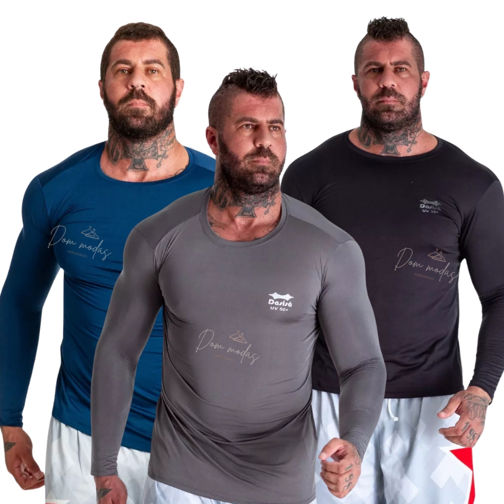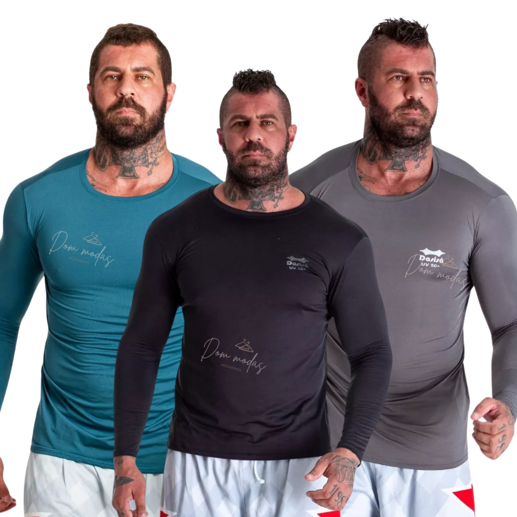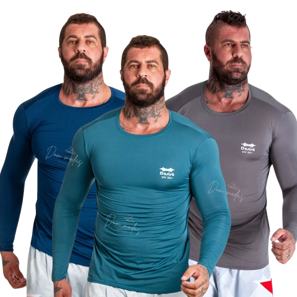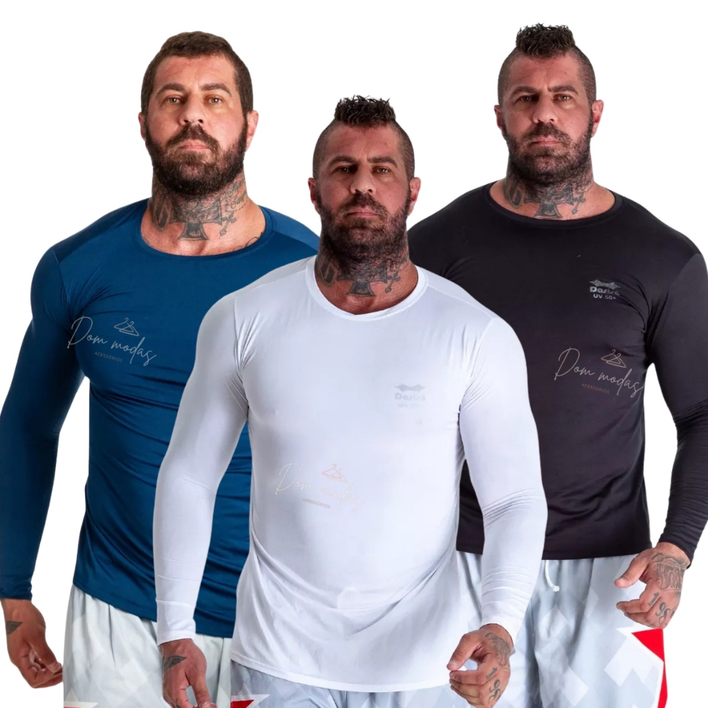 Kit 3 OU 2 Camisa Térmica Proteção Uv 50+ Segunda Pele Camiseta Blusa Academia Manga Longa
