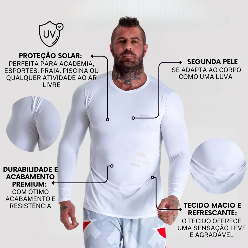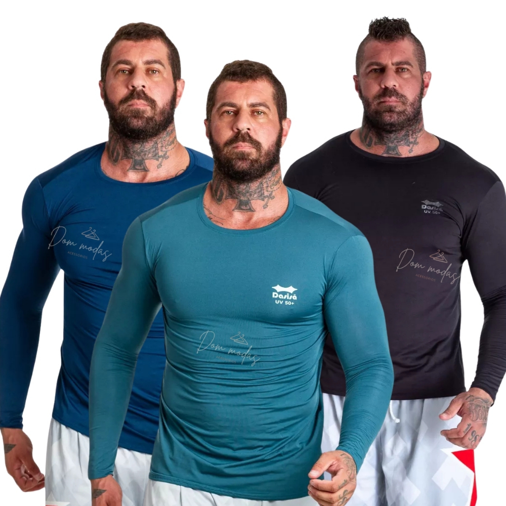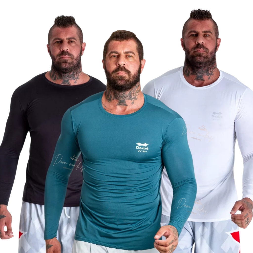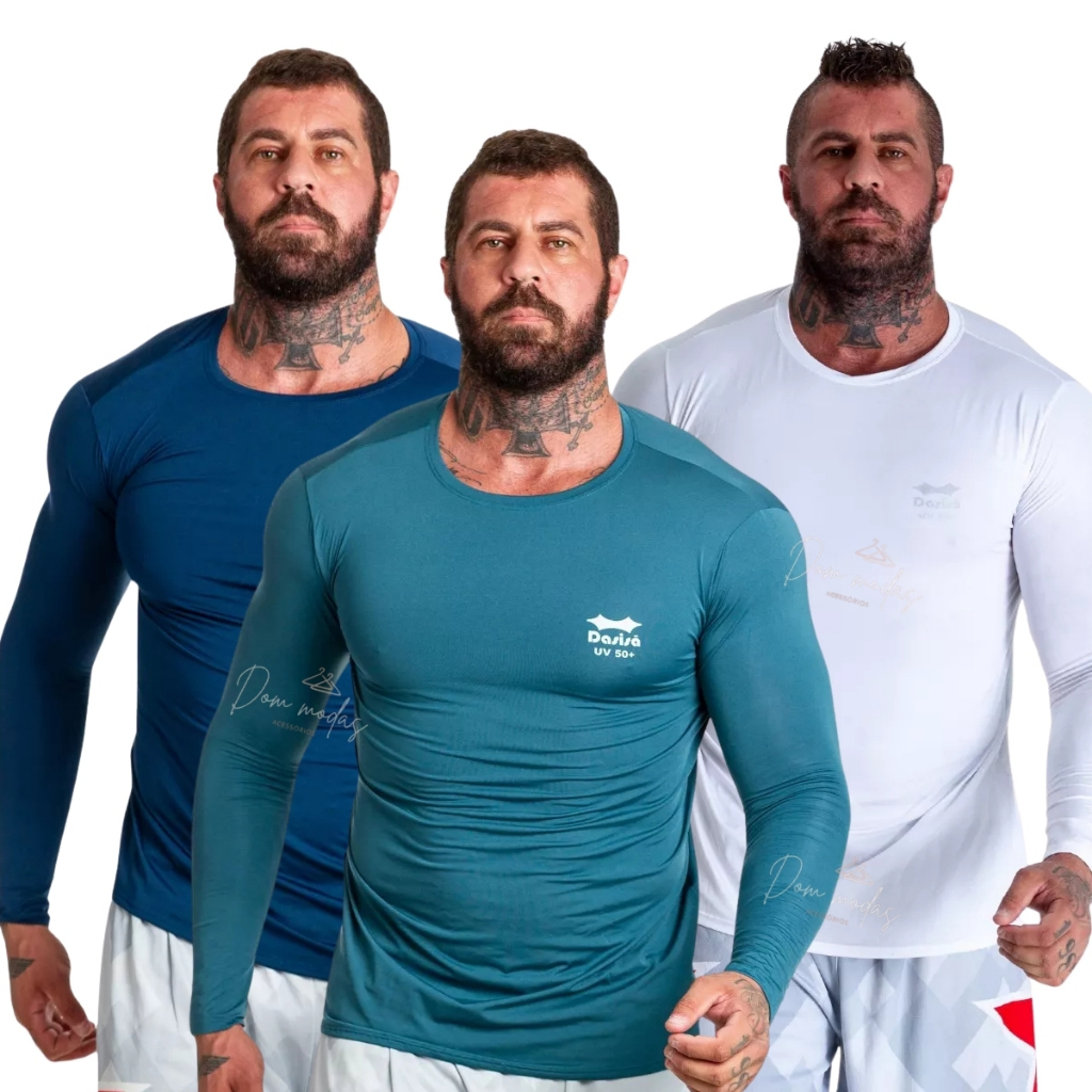 Kit 3 OU 2 Camisa Térmica Proteção Uv 50+ Segunda Pele Camiseta Blusa Academia Manga Longa