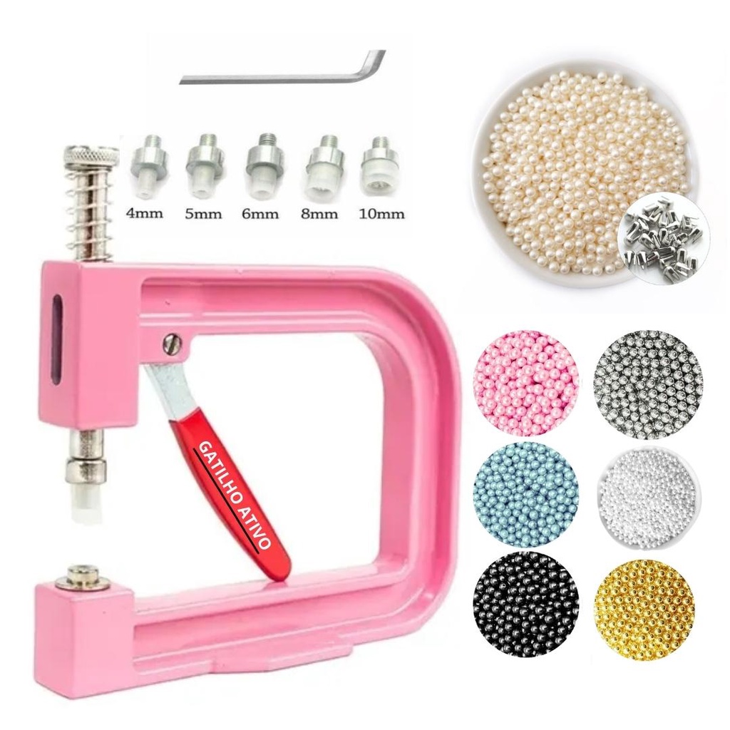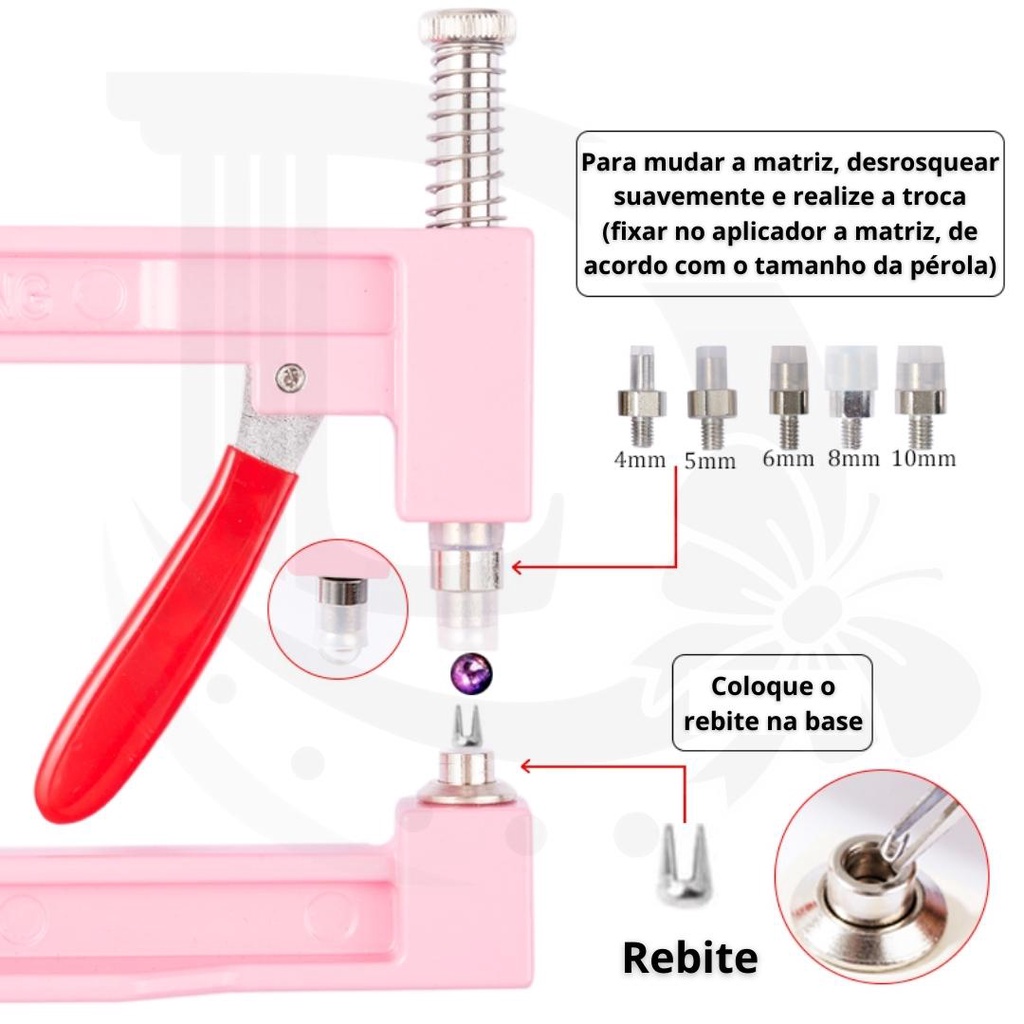 Kit Aplicadora Rosa De Perola + 200 Perolas, Matriz, Rebites