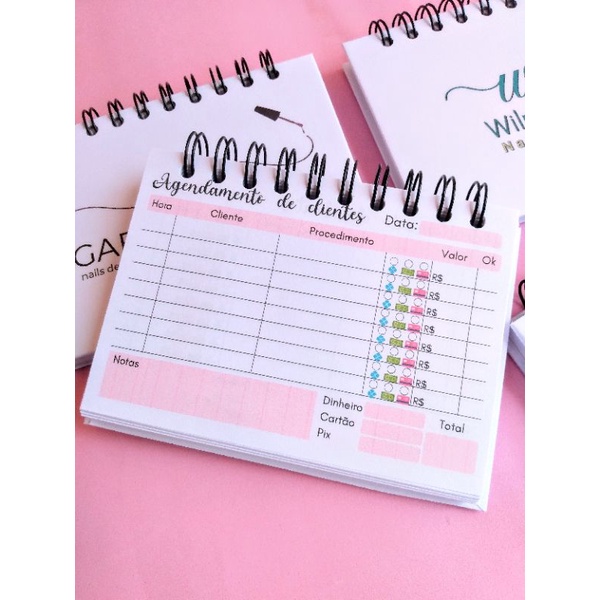 Bloco de agendamento de clientes, 10x15cm - 80fls, 160pg.