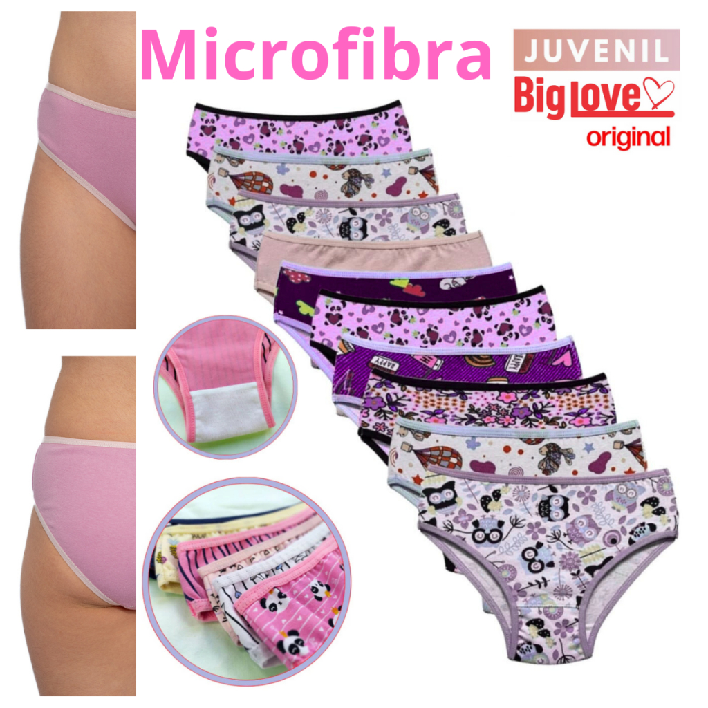 Kit Calcinha Juvenil Microfibra Tamanhos 7 até 16 anos Promoção Direto da Fábrica Ref:030