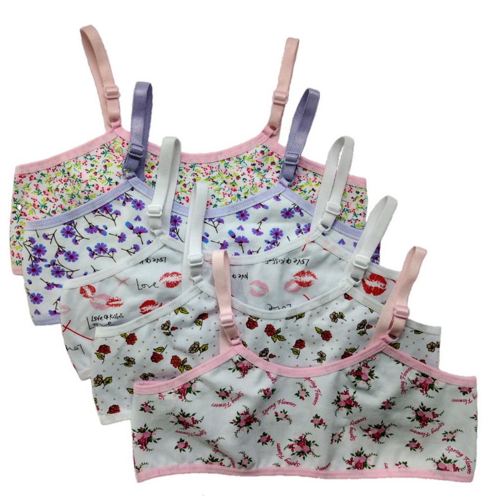 Kit com 5 Top Juvenil e Infantil de Algodão com Alça de Sutiã tamanhos de 7 até 15 anos