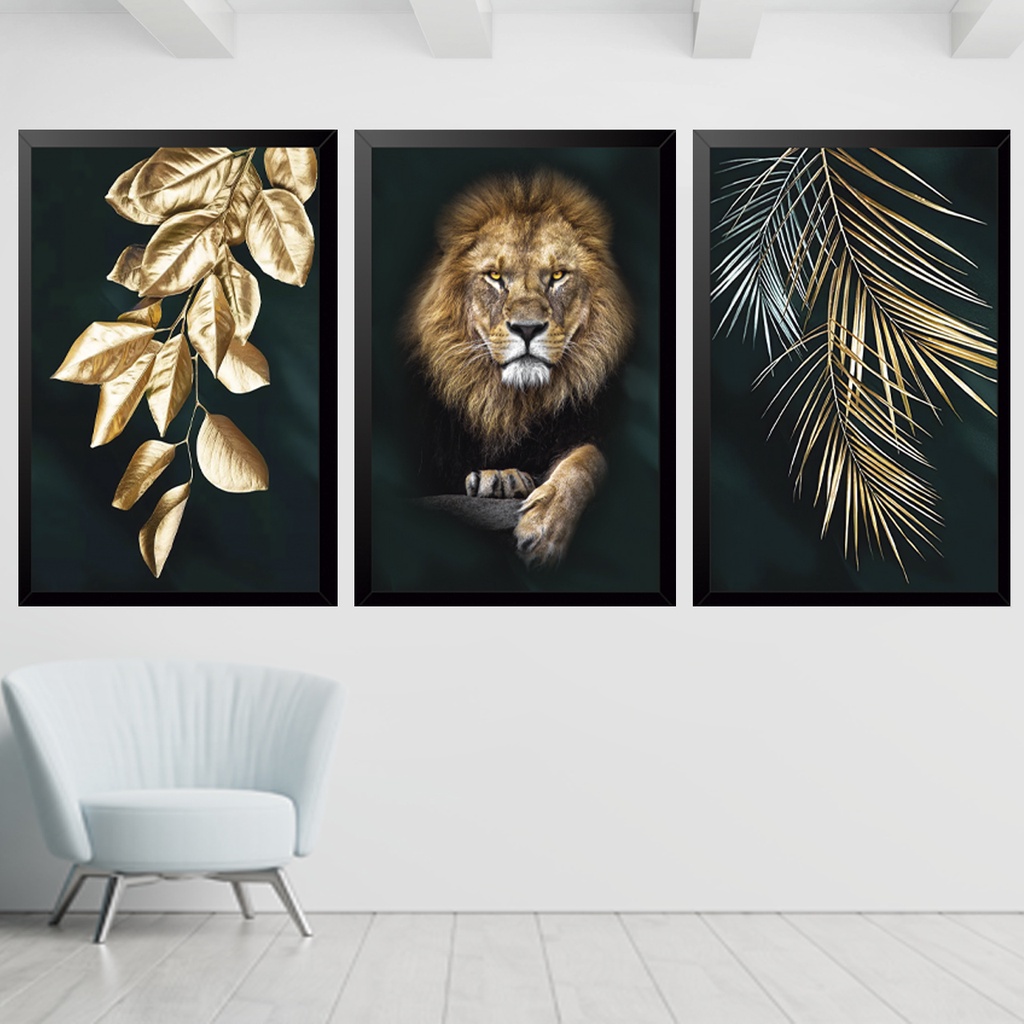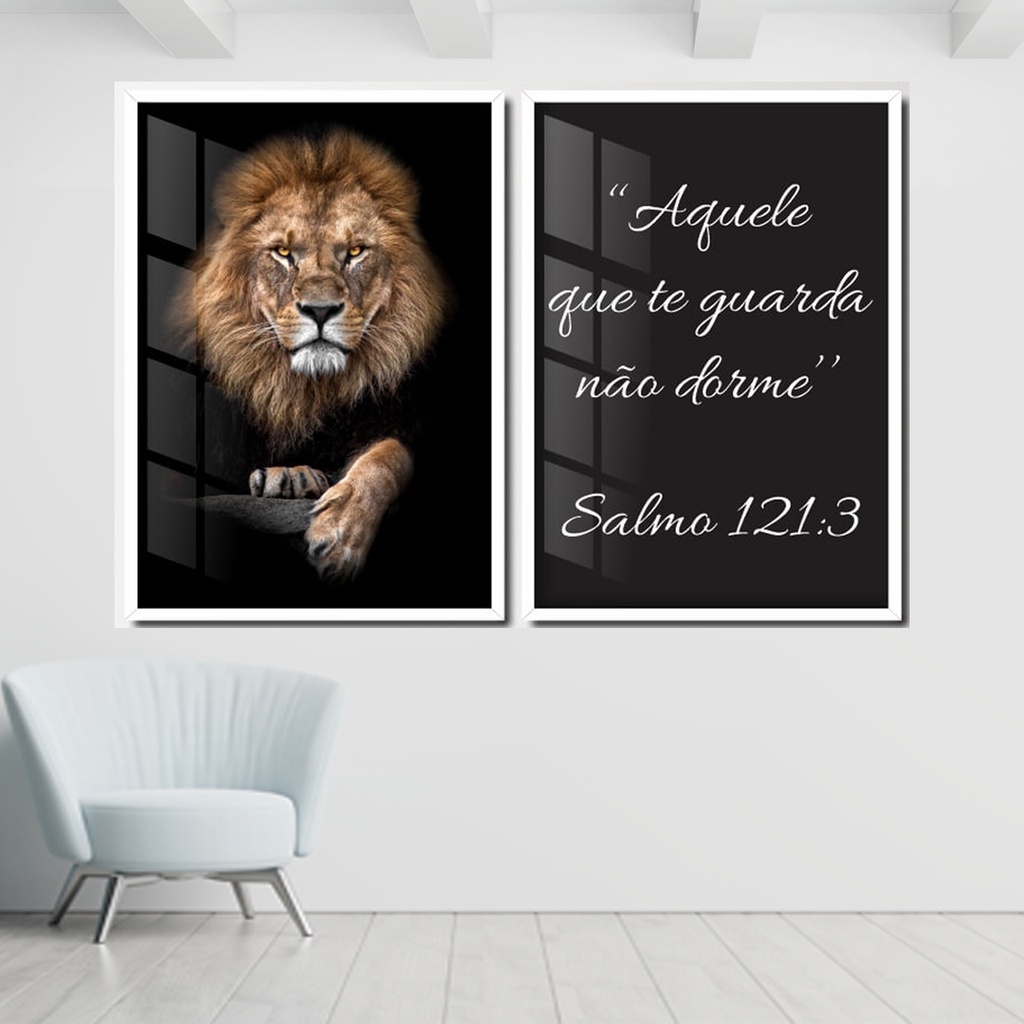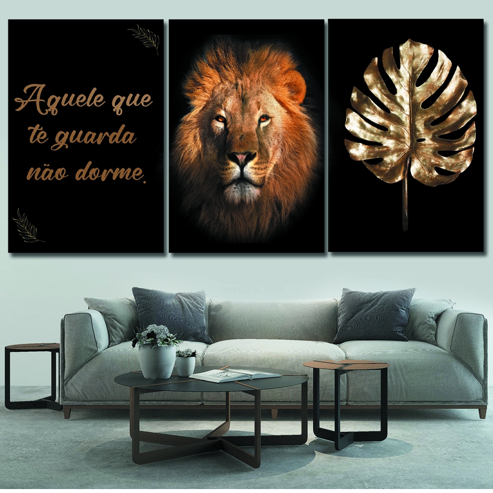 Quadro decorativo leão de Judá folha gold ou frase promoção grande 120x60