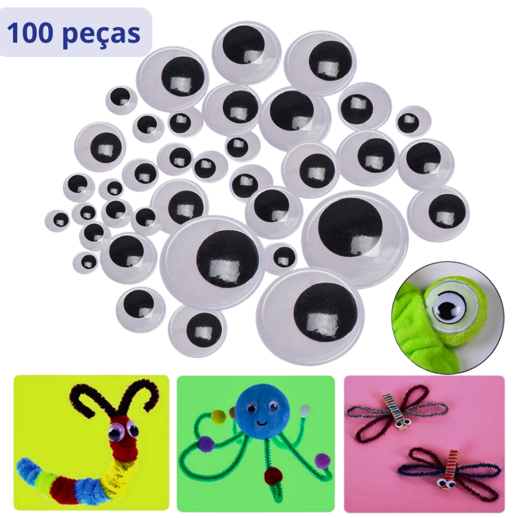 Olho Móvel Articulado com adesivo, Tamanhos Variados olhinhos móveis 200 peças