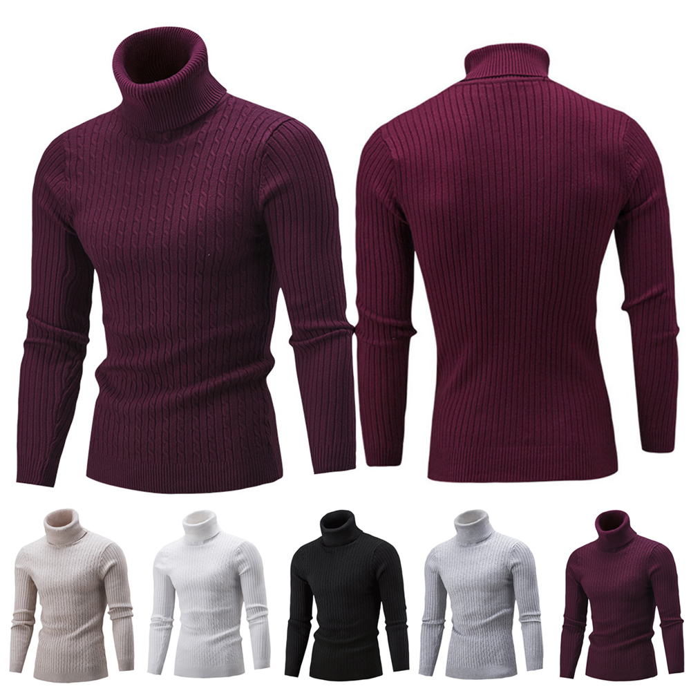 Suéter Masculino Casual Slim Gola Alta Cor Lisa Com Gola Alta Para Masculino