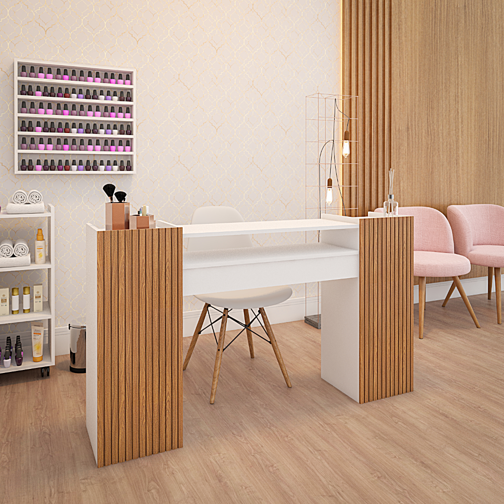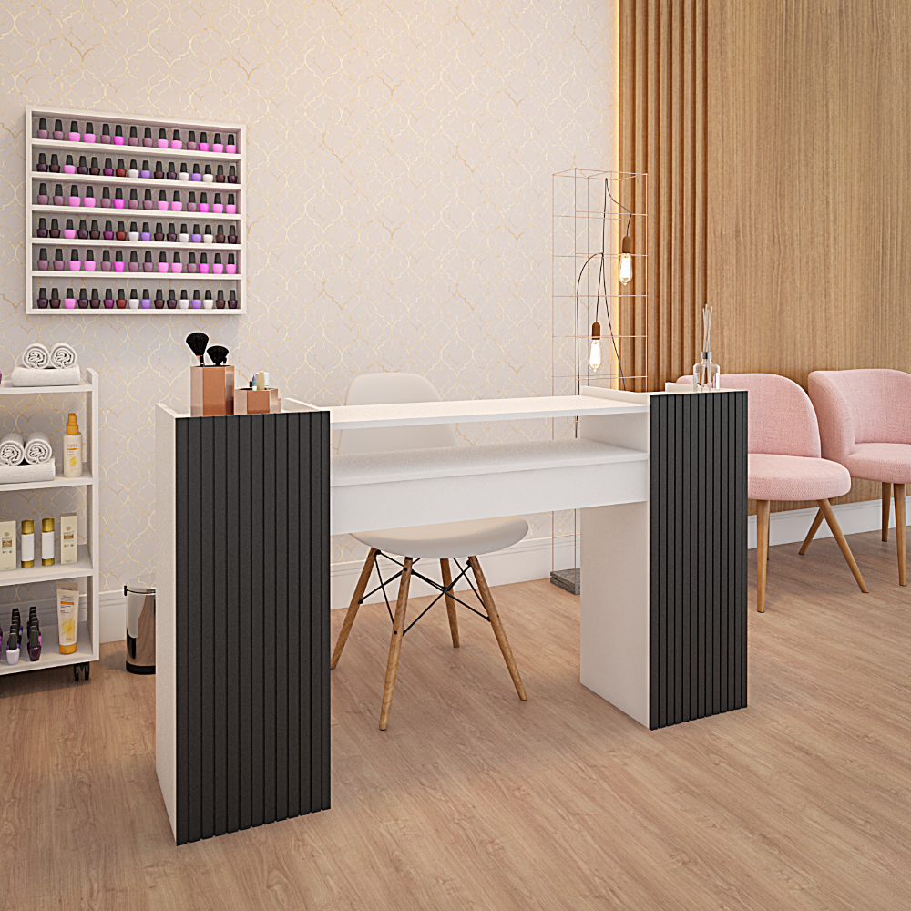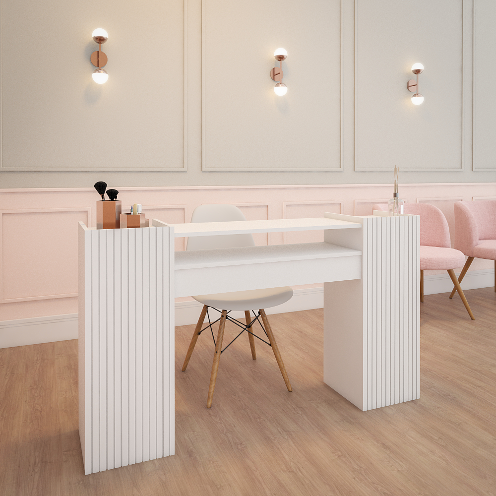 Mesa de Manicure Grande Rosa 140 CM Ripado Para Pedicure Nail Designer Moderna
