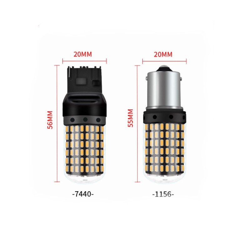 2pçs Lâmpada Led Canbus Ba15S T20 7440 1156 144 Chip 3014 6000k 12v-24v