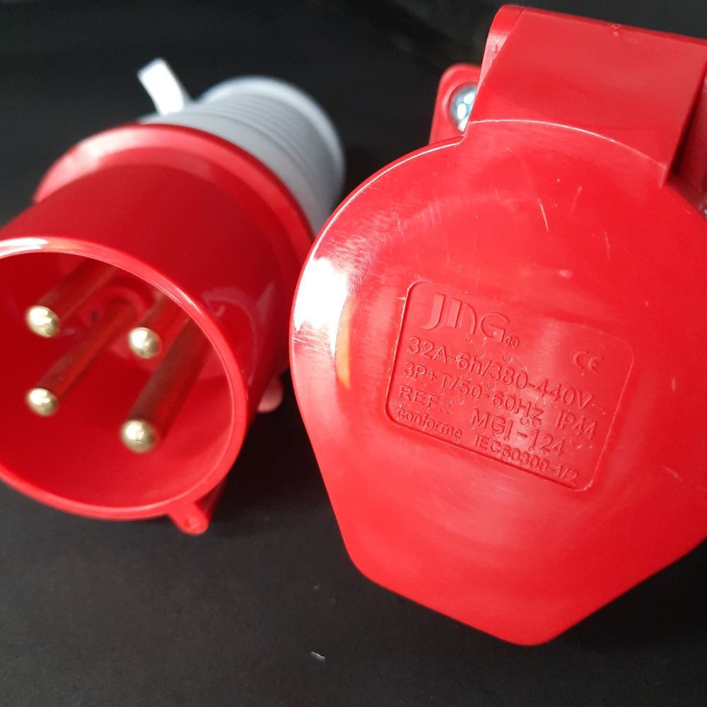Plug + Tomada Industrial 32A Para Empresas Vermelho 3P+T